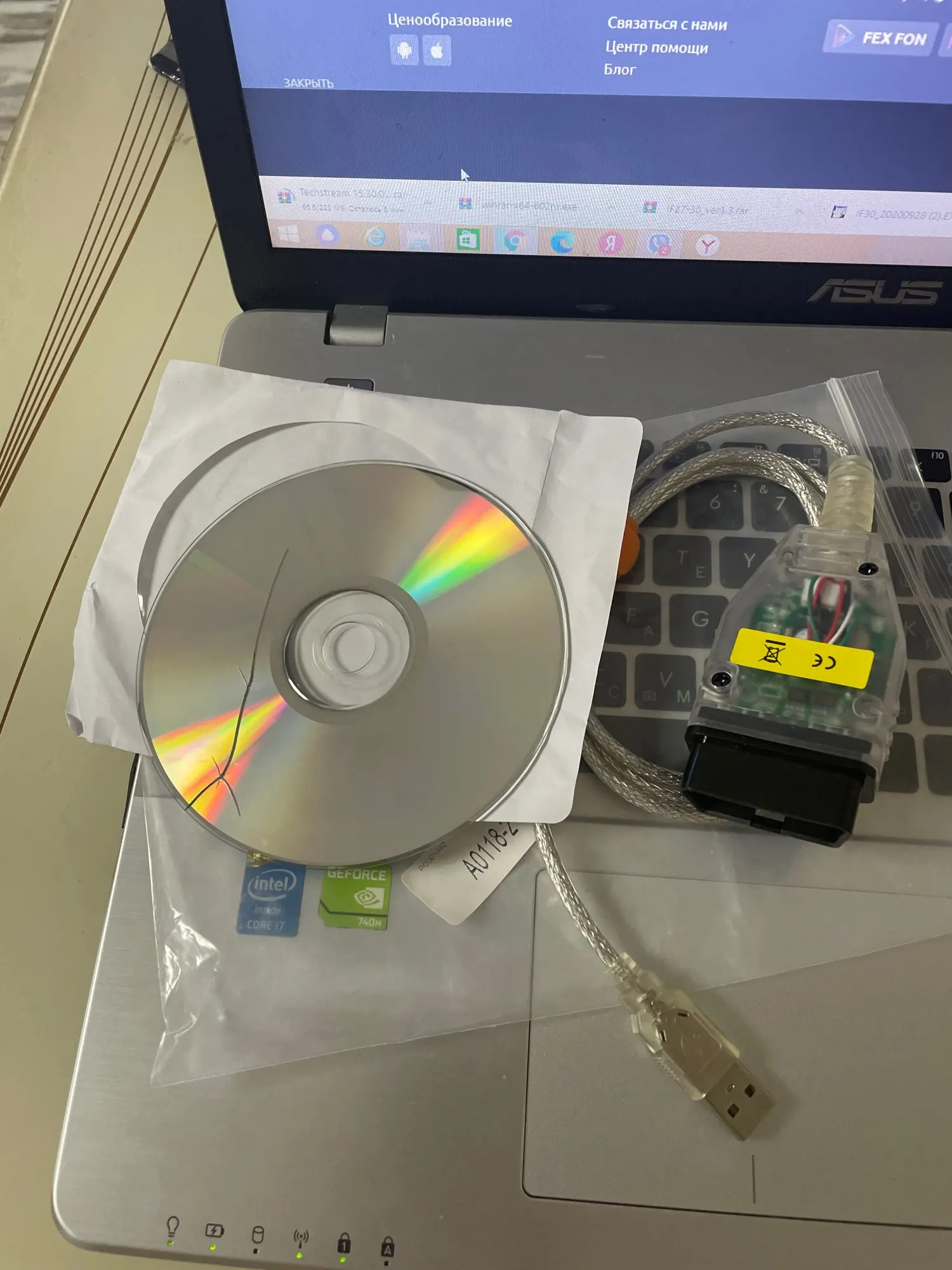 Брал на Toyota Avensis 2 с двигателем 1az-fse все работает! Прогу искал в интернете так как диск в комплекте с кабелем был сломан. Брал чтобы увидеть давление в топливной рампе и отклик открывания форсунок. На ноутбуке стояла Windows 8.1