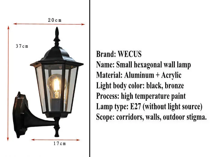 (WECUS) Европейский стиль ретро напольный настенный светильник балкон Бра Лампа Водонепроницаемый садовое украшение на открытом воздухе винтажная лампа для крыльца