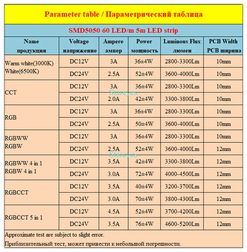 Мощность:36-76 Вт/5 метров(Посмотрите таблицу параметров)