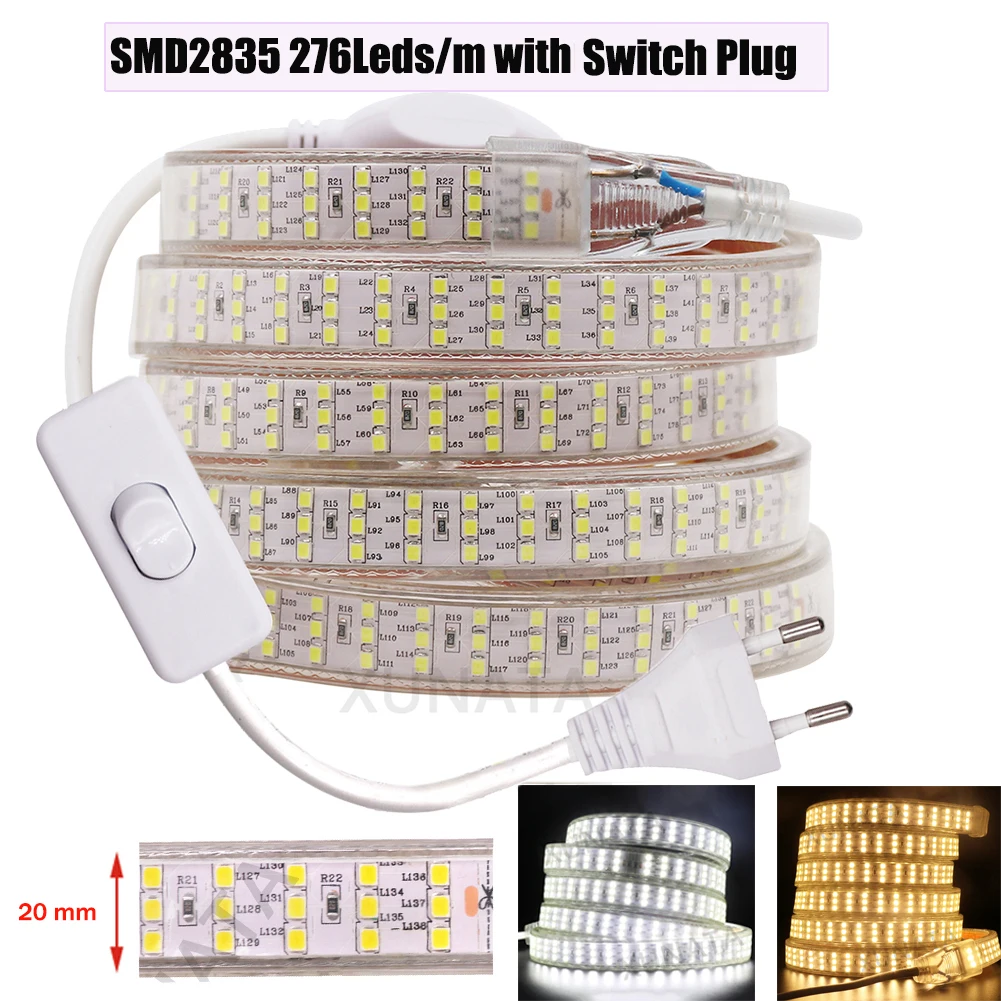 276 светодиодный ная лента sm, трехрядсветодиодный Светодиодная лента 2835, 220 В, 240 в, водонепроницаемая светодиодная лента, веревочный светильник, теплый белый свет для украшения дома, Новинка