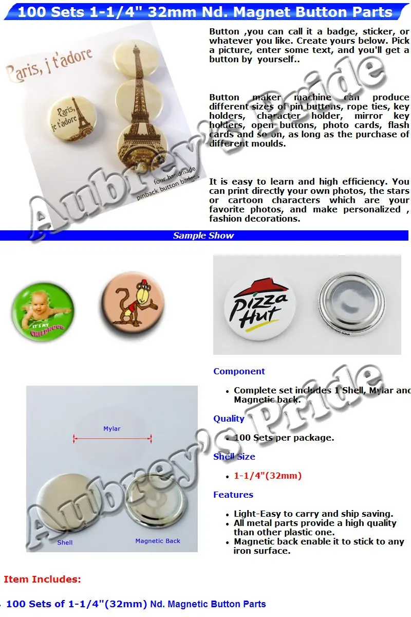 1-14 дюйма, 32 мм, 100 комплектов, Новый профессиональный Nd. Материалы для подачи магнитных металлических кнопок на холодильник