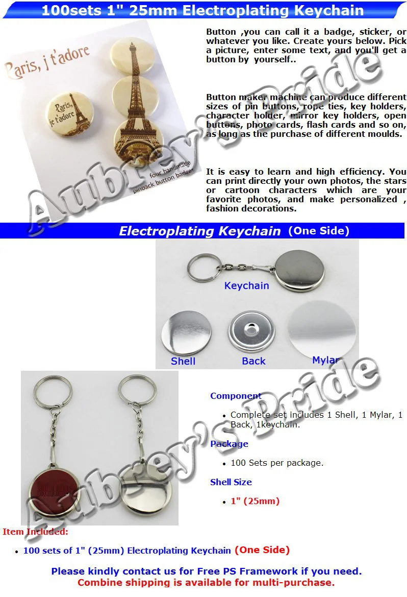 Брелок для ключей, 1 дюйм, 25 мм, 100 наборов