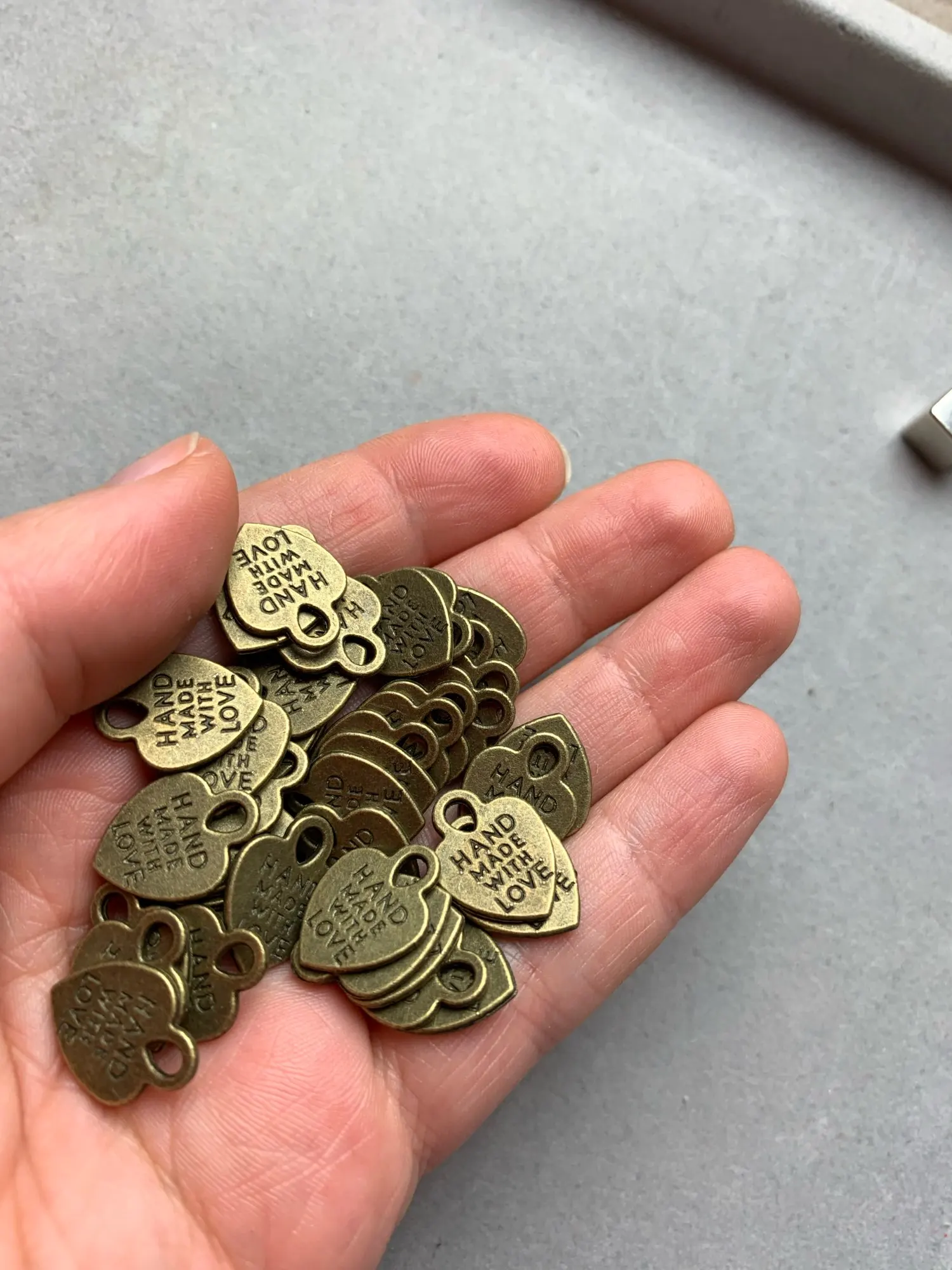 40 шт. 15x12 мм античная бронза цинковый сплав ручной работы с любовью подвески в форме сердца Diy ювелирных изделий Аксессуары оптом