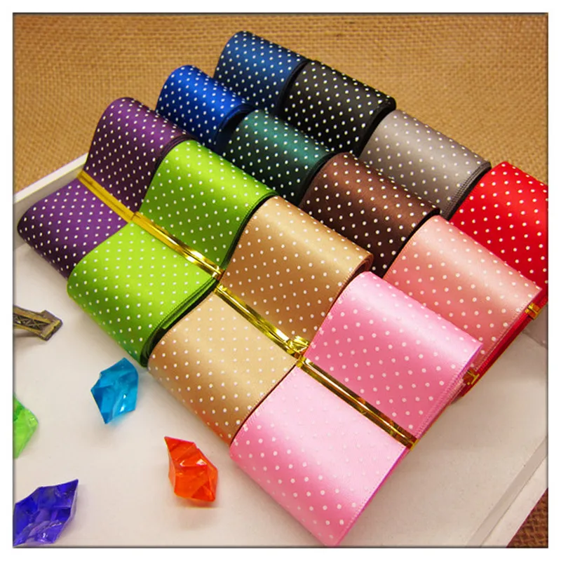 Бесплатная доставка, лента с принтом в горошек 1-12 дюйма, 38 мм, атласная лента, 12 смешанных цветов