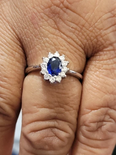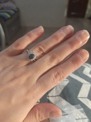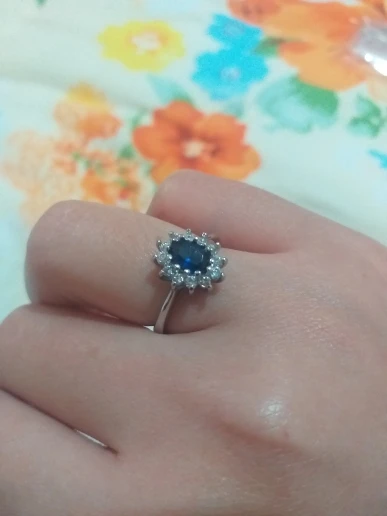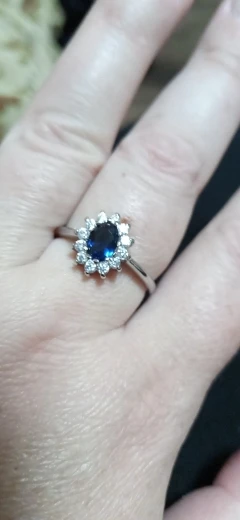 очень красивое кольцо, просто прелесть, и размер подошел, смотрится класс, камешки играют на свету, как настоящий сапфир с брилиантами, спасибо, рекомендую магазин и продавца.