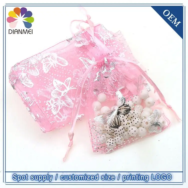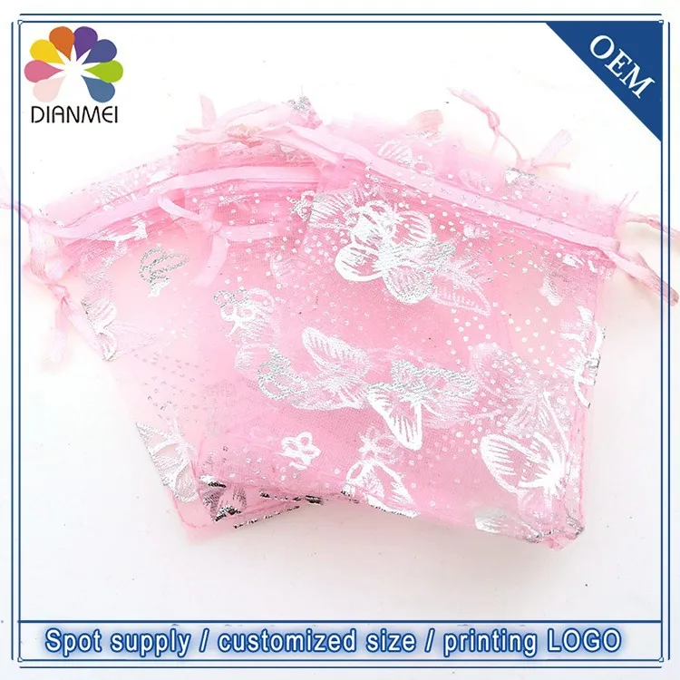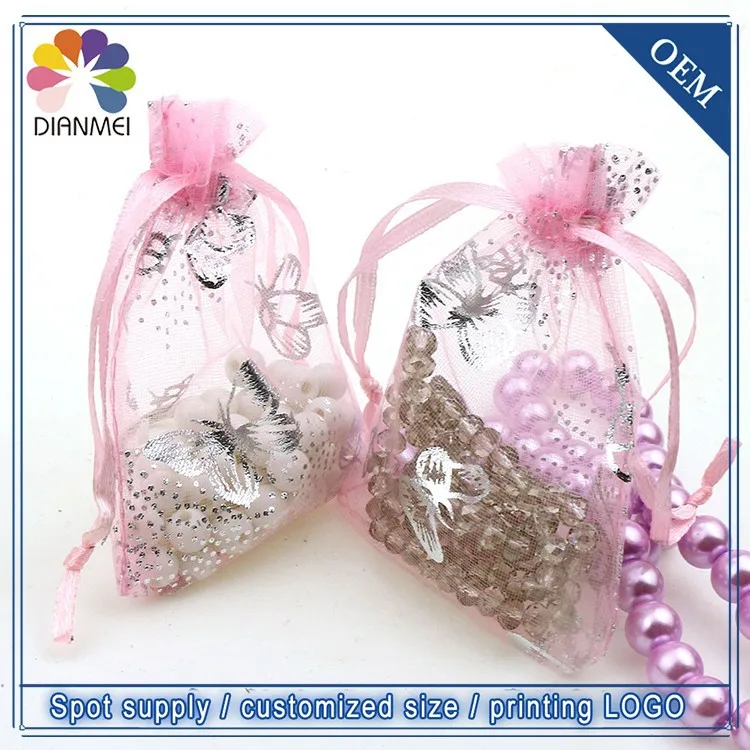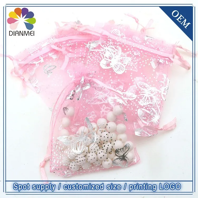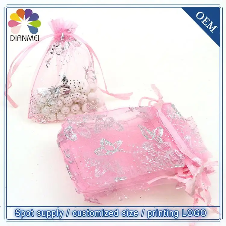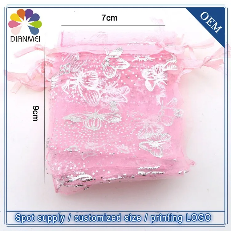 Новинка 100 шт./лот 7x9 см розовая бабочка ювелирные изделия органза сумки рождественские подарочные пакеты тюль подарочная упаковка Пакеты Подарочная Упаковка