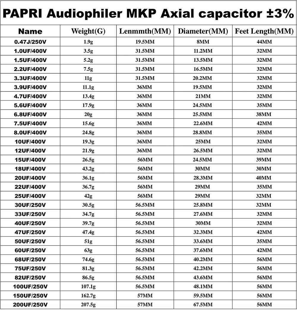 PAPRI Аксиальный конденсатор MKP 0,47-30 мкФ, 250 В постоянного тока, 1 шт., для HIFI, сделай сам, частотная емкость, гитарный усилитель