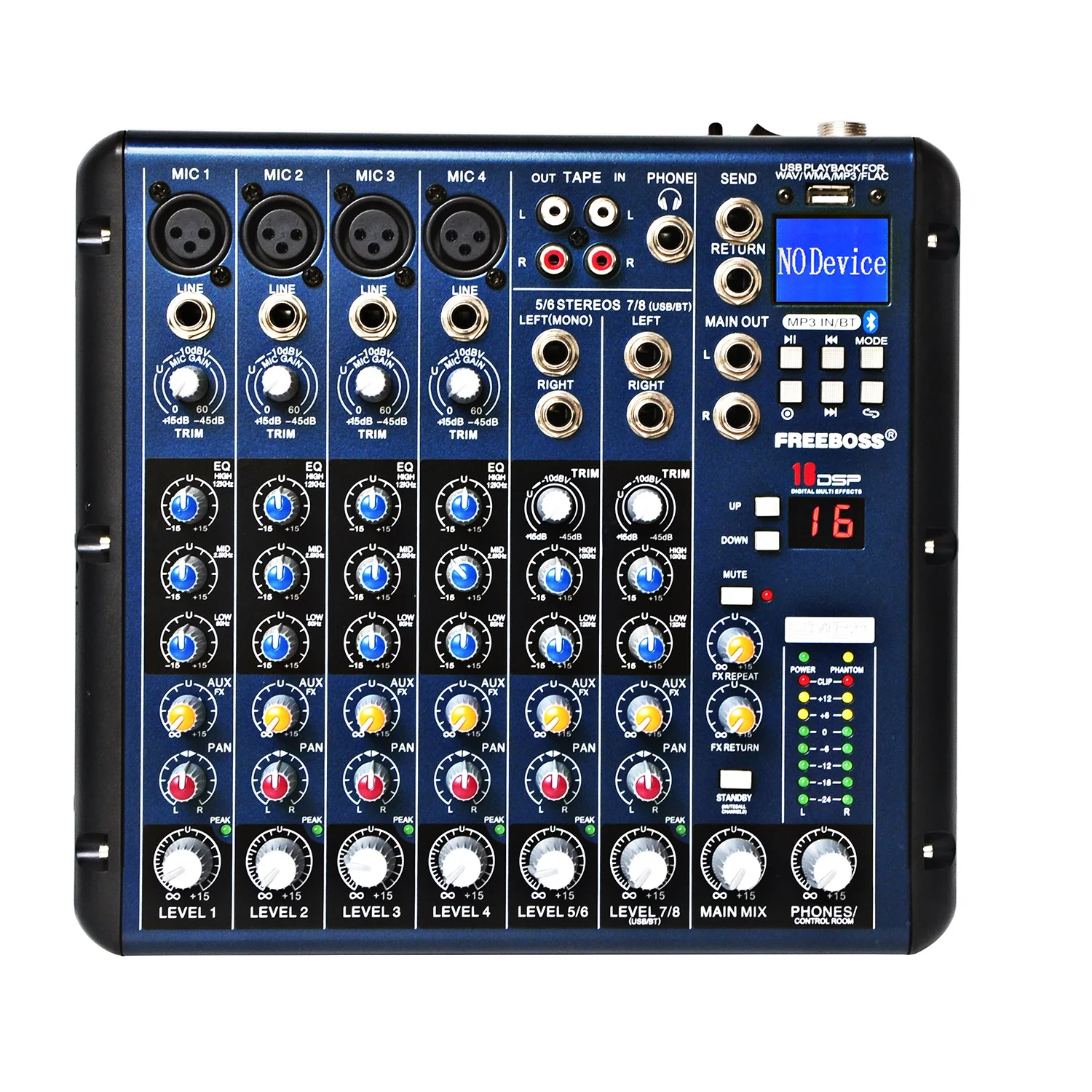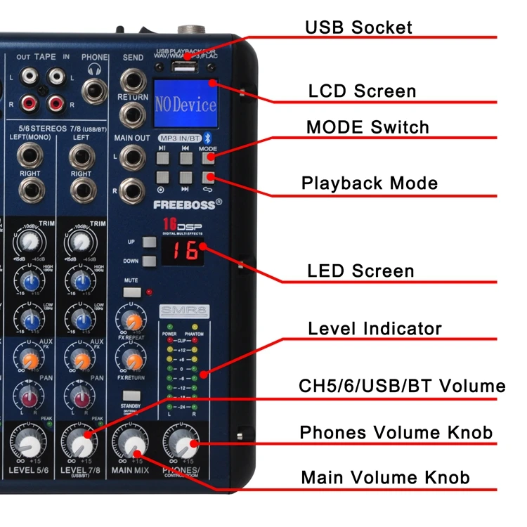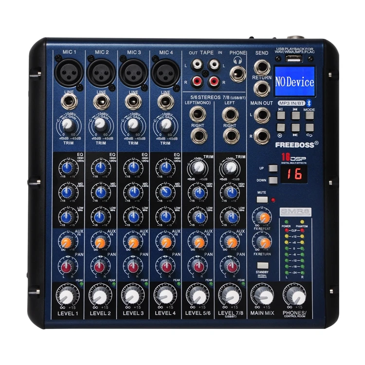 Freeboss SMR8 Bluetooth USB Запись 8 каналов (4 моно + 2 стерео) 16 DSP церкви школы караоке вечерние НКИ USB DJ микшер