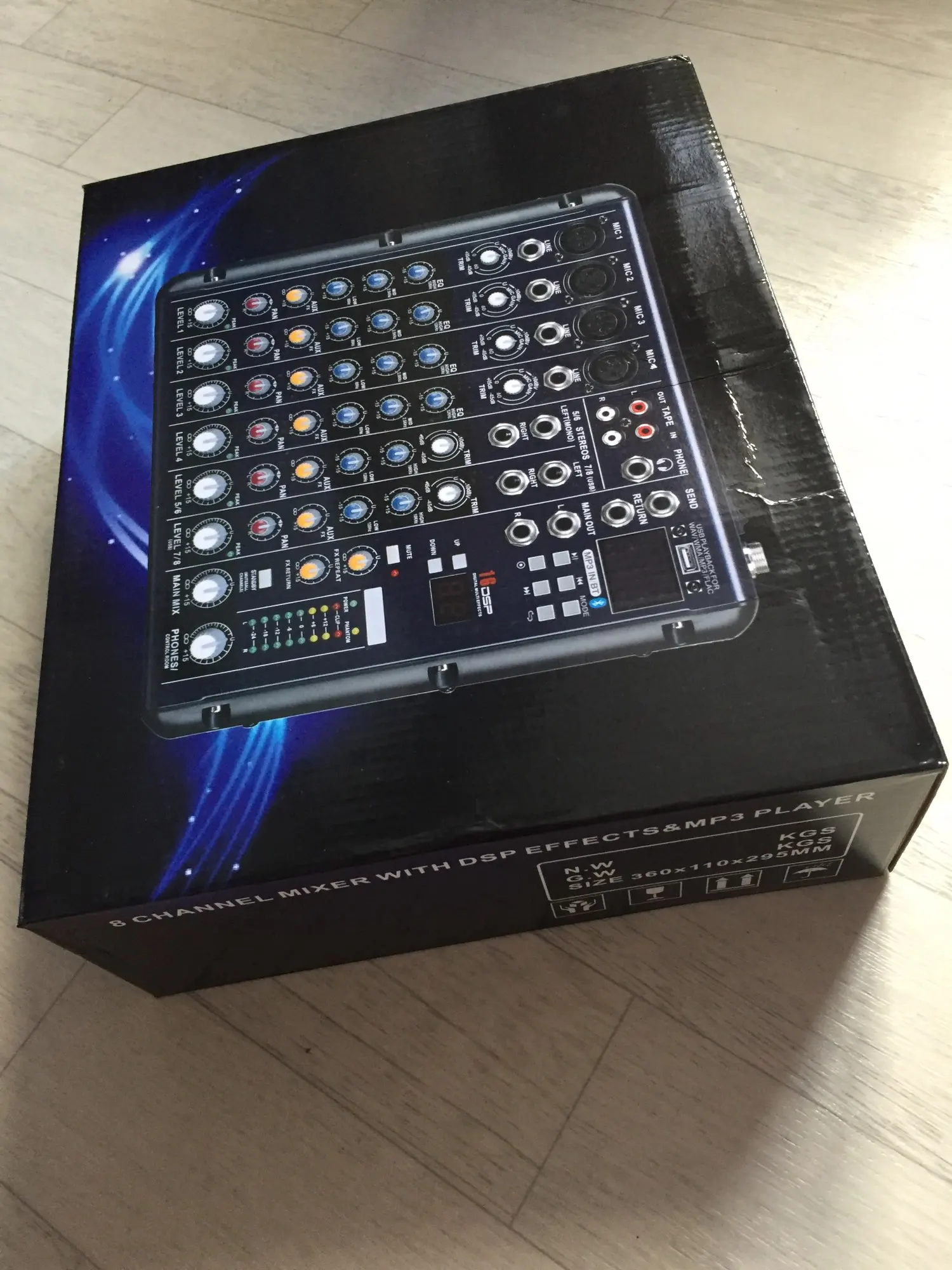 товар пришел в целости и сохранности за исключением того что некоторые болтики были просто напросто откручены, гайки разболчены, но все закрутилось и подтянулось, микшер вроде работает, пока могу проверить лишь работоспособность блютуза, позже дополню отзыв! товар пришел в течении 6 дней