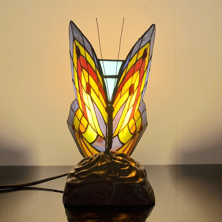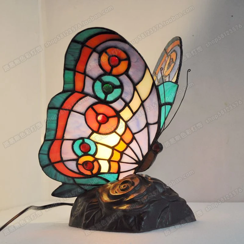 Светодиодный ная настольная лампа в виде бабочки, прикроватный светильник из стекла Тиффани для спальни, гостиной, кабинета, Европейского светильник с изображением животного