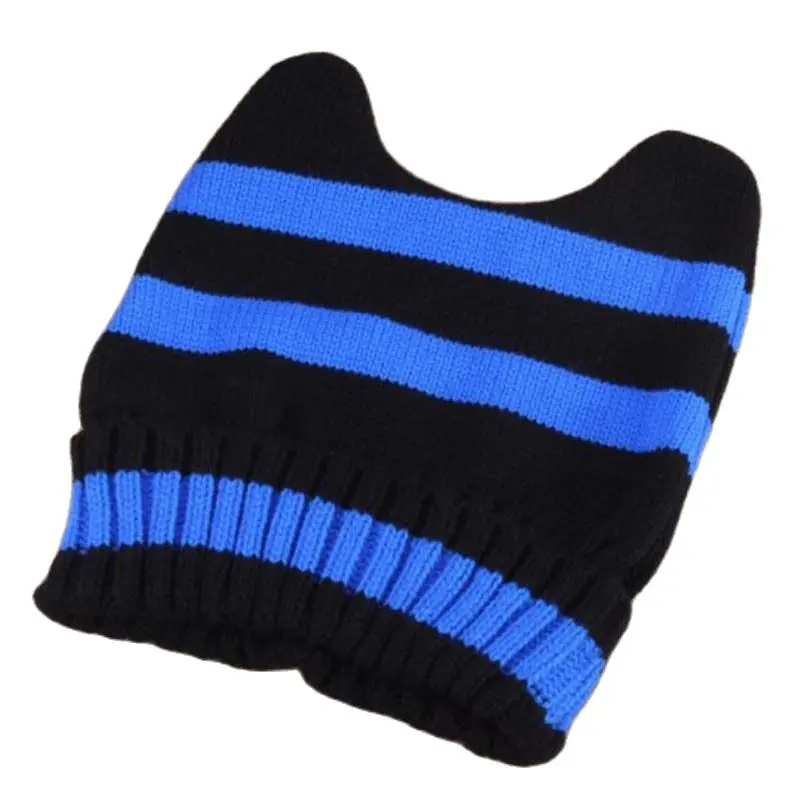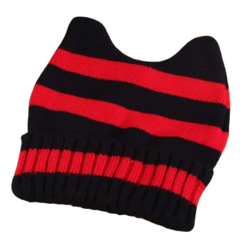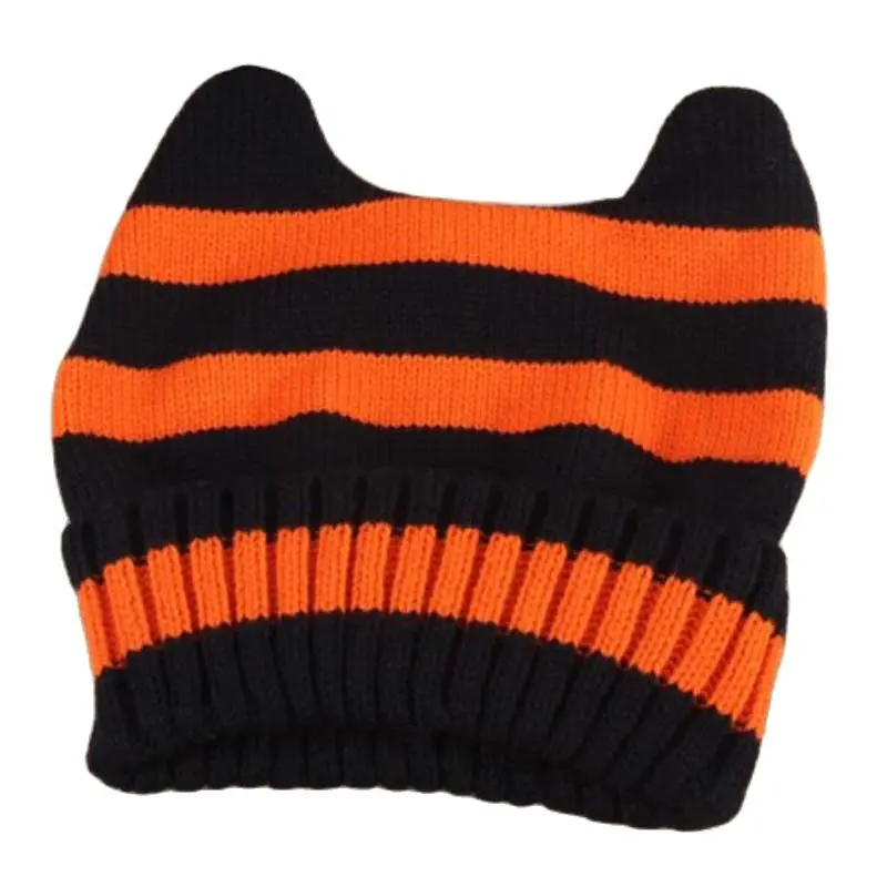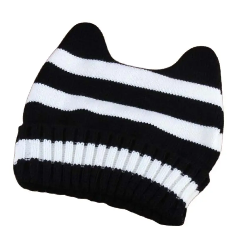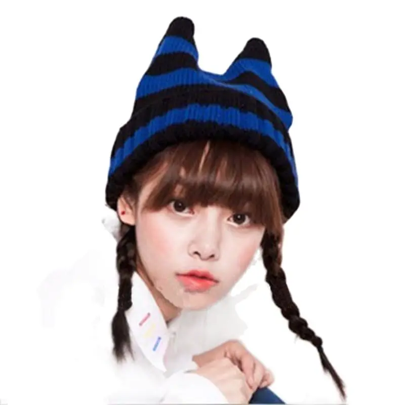 Осенне-зимняя вязаная шапка XEONGKVI в полоску с милыми ушками, теплая шапка для женщин, шапки с помпоном из рогов дьявола