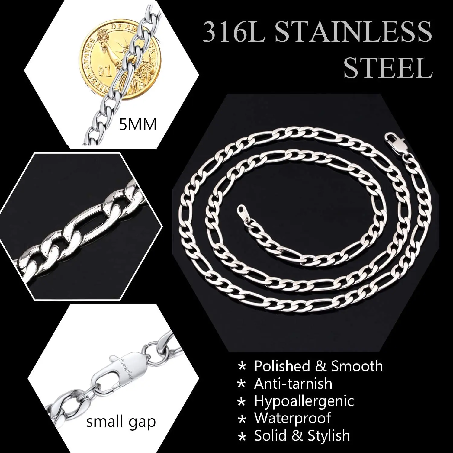U7 ЗолотойСеребряный Цвет Цепи Ожерелье из Нержавеющей Стали Для Мужчин Оптом Ювелирные Изделия Фигаро Цепочка На Шею N141