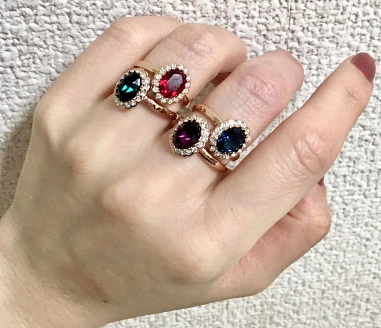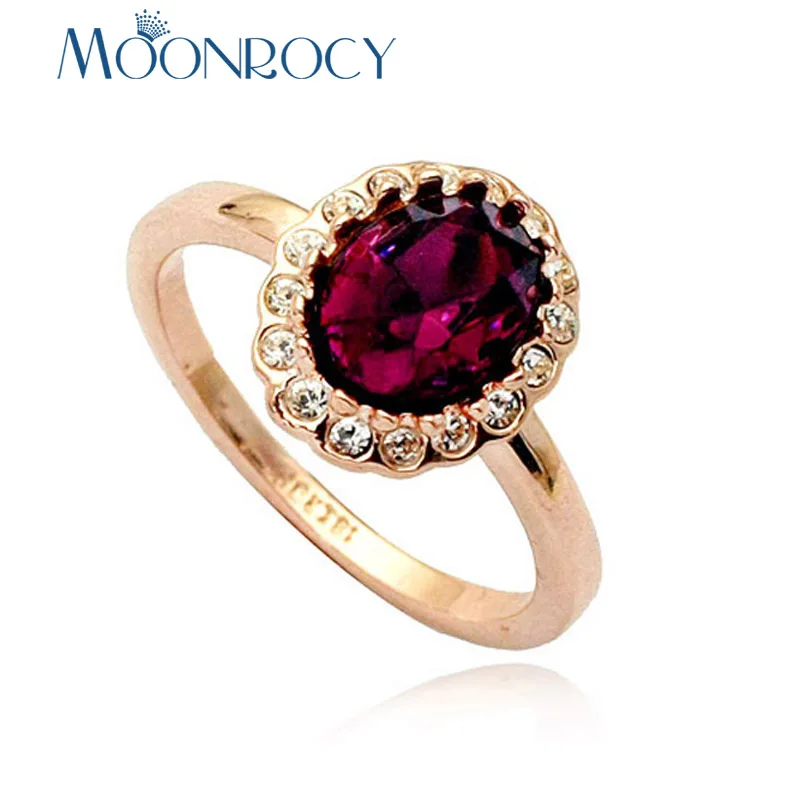 Женское кольцо с фианитом MOONROCY, кольцо с кристаллами из розового золота, красный, зеленый, фиолетовый цвет, Прямая поставка, подарок на палец