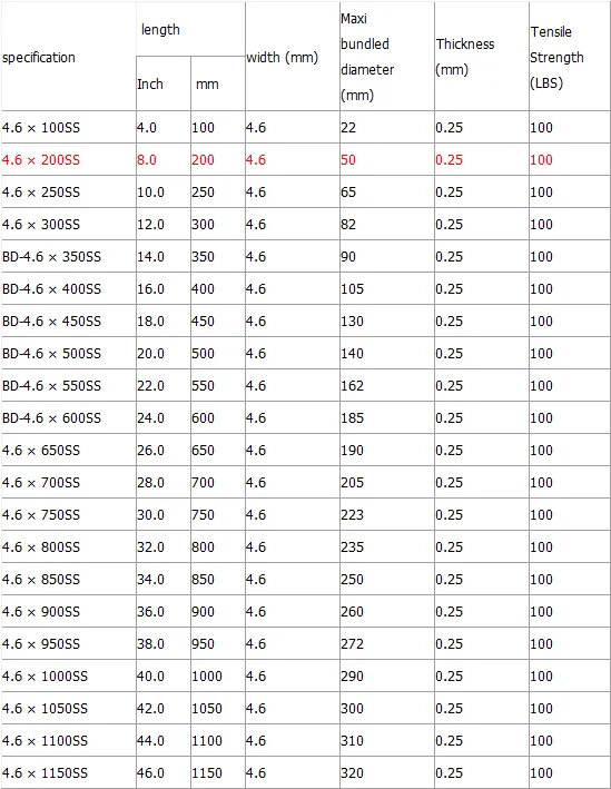 Кабельные стяжки на молнии из нержавеющей стали, 100 шт., 4,6 мм x 200 мм