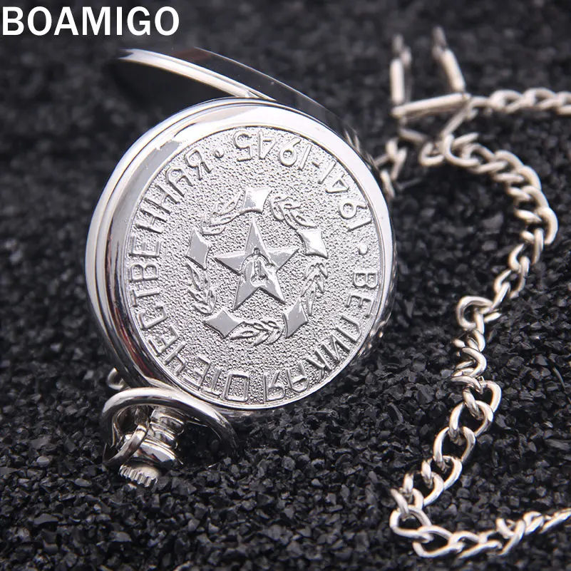 BOAMIGO русское винтажное Серебро Советский Большевик механический FOB карманные часы мужские военные кулон часы цепь бесплатная доставка