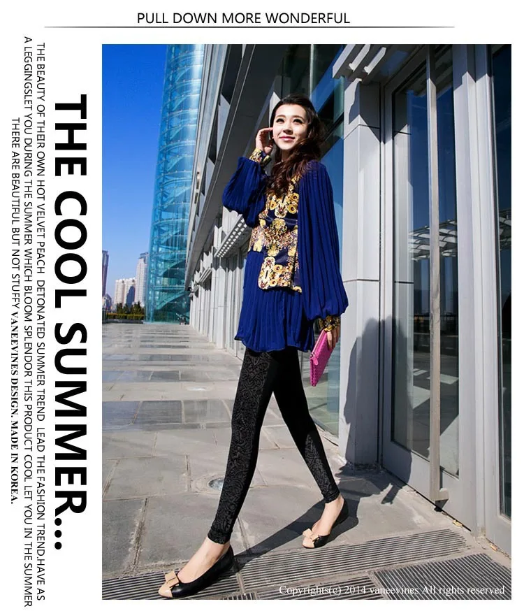 Женские бархатные леггинсы до щиколотки, с декоративным узором