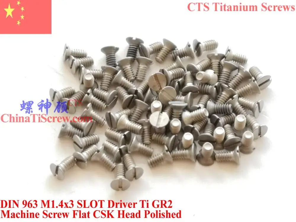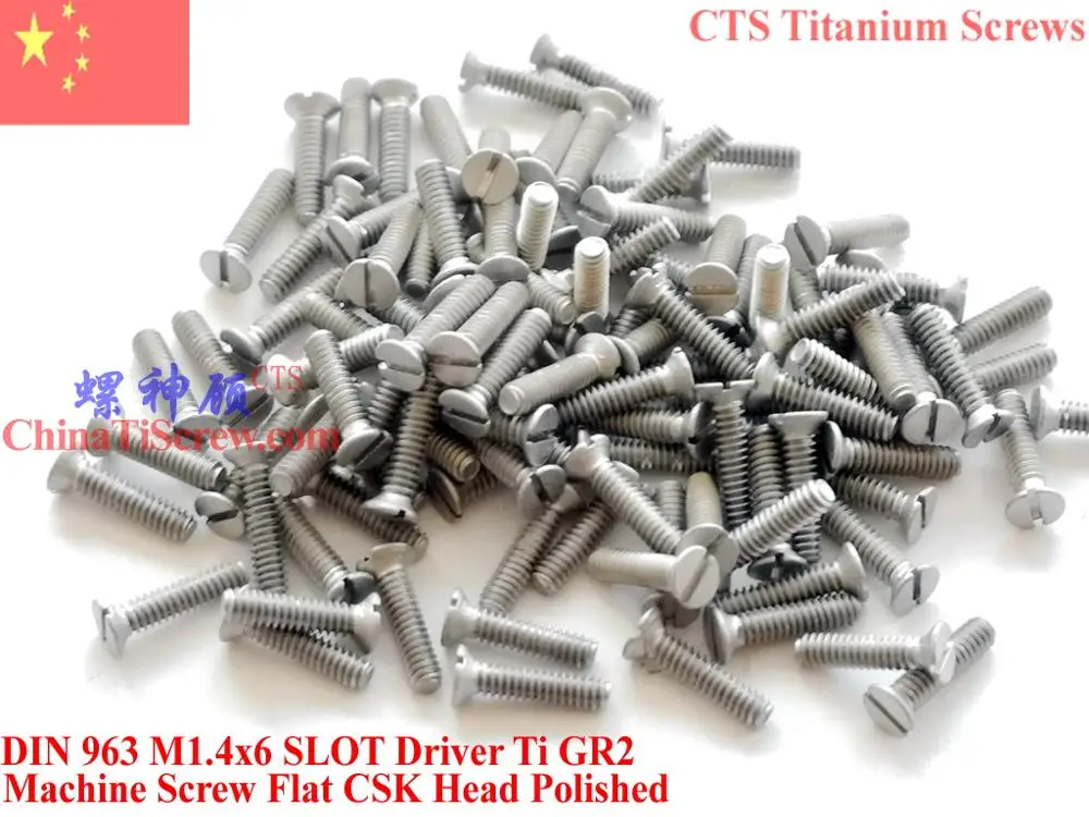 Титановые винты DIN 963 M1.4 M1.4x3 M1.4x4 M1.4x5 M1.4x6 с плоской головкой, отвертка Ti GR2 полированный