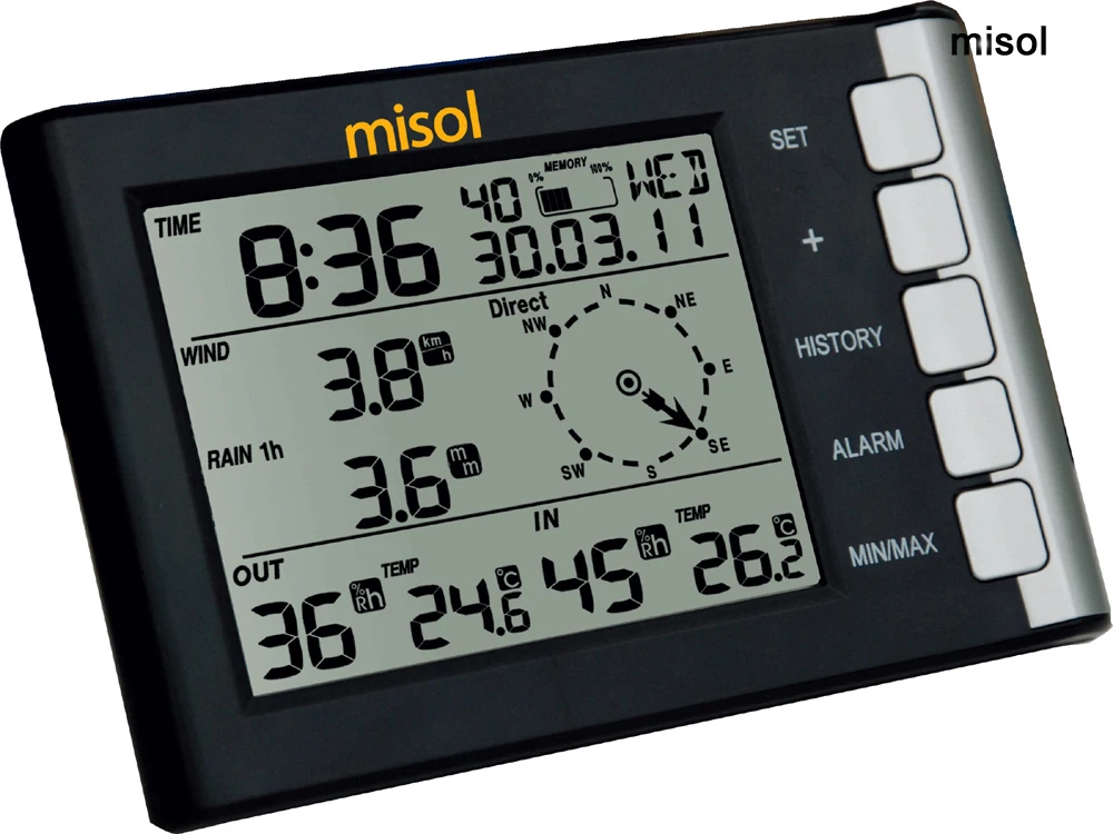 Вам может понадобиться Метеостанция misol:MS-WH-5300-1Misol профессиональная Погодная станция скорость ветра направление ветра температура влажность дождь 433 МГц, MS-WH-5300-1