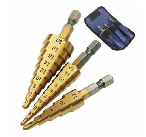 Набор металлических конусных сверл, 3шт., Сверло с титаническим покрытием 4-122032 мм