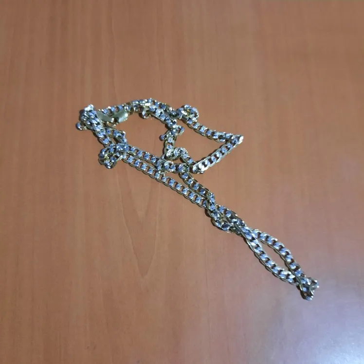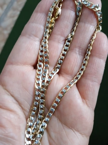 Цепочка идеальная, желтое золото и белое. Очень красивая, думала будет толще но нет она как раз какую я хотела, толстая смотрелась бы через чур, а так она очень аккуратненькая не утяжеляет образ и достаточно привлекает взгляды. Надеюсь не облезет через неделю. Рекомендую. Доставка молниеносная, продавец расторопный, быстро отправил.