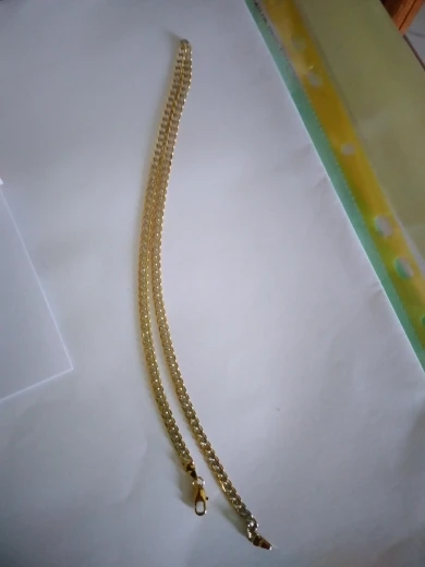цепочка длинная, красивая ,блестящая , похожа на золото . доставили быстро . в процессе эксплуатации возможно появятся дополнительные поводы для отзыва .. тогда я его дополню