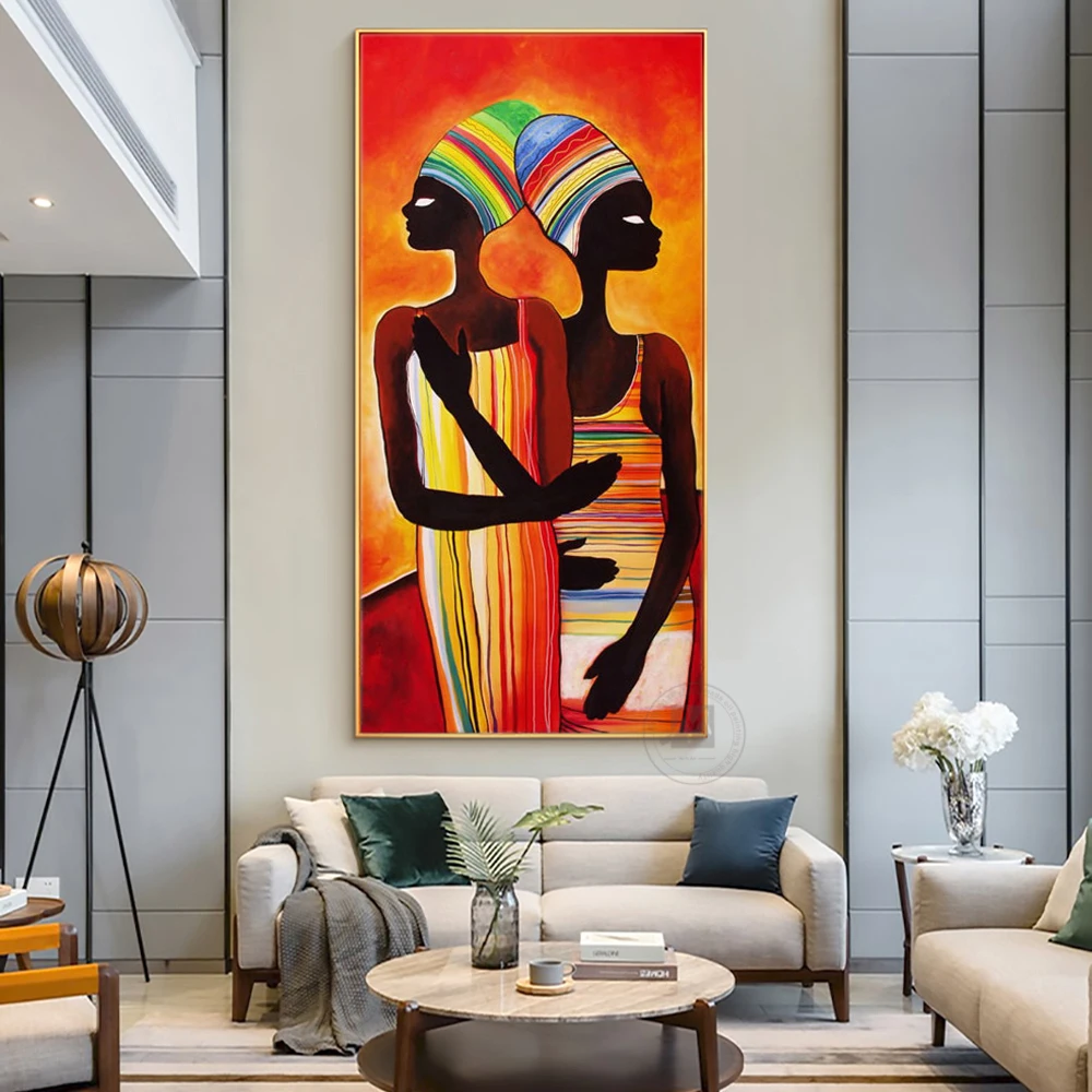 Вертикальная декоративная картина, современный абстрактный портрет Африки, картина маслом на холсте для гостиной, большой размер, ручная работа