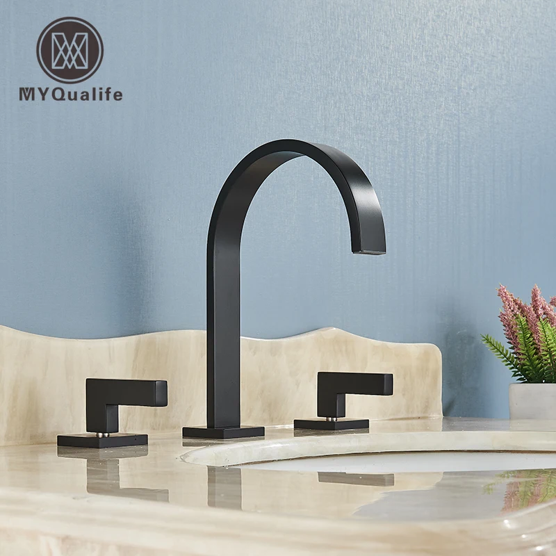 Смесители для раковины, латунные квадратные смесители для раковины с двойной ручкой, 3 отверстия, кран для горячей и холодной воды