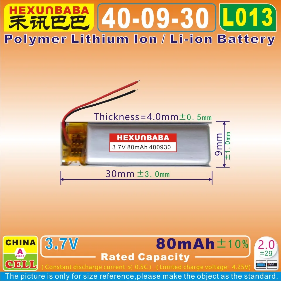 10 шт. L013 3,7 в 80 мАч 400930 полимерная литий-ионная батарея для умных часов, TWS Box Bluetooth наушники, наушники, Smartband