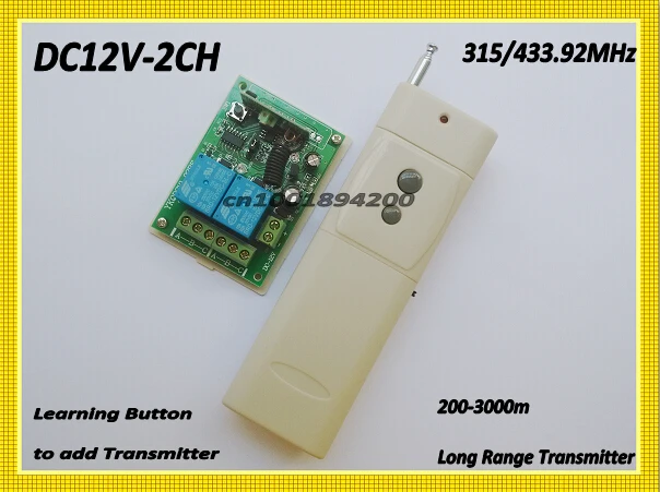 Беспроводной радиочастотный передатчик 315433 МГц, 12 В, 2 канала, переключатель дистанционного управления, обучающий код, мгновенное переключение, запираемый индикатор реле