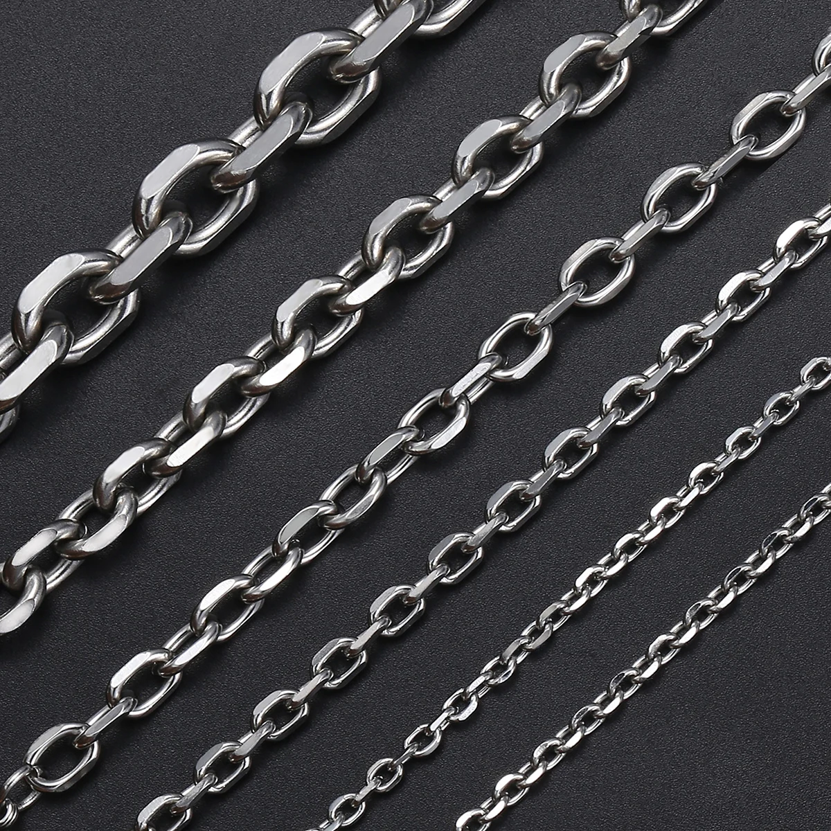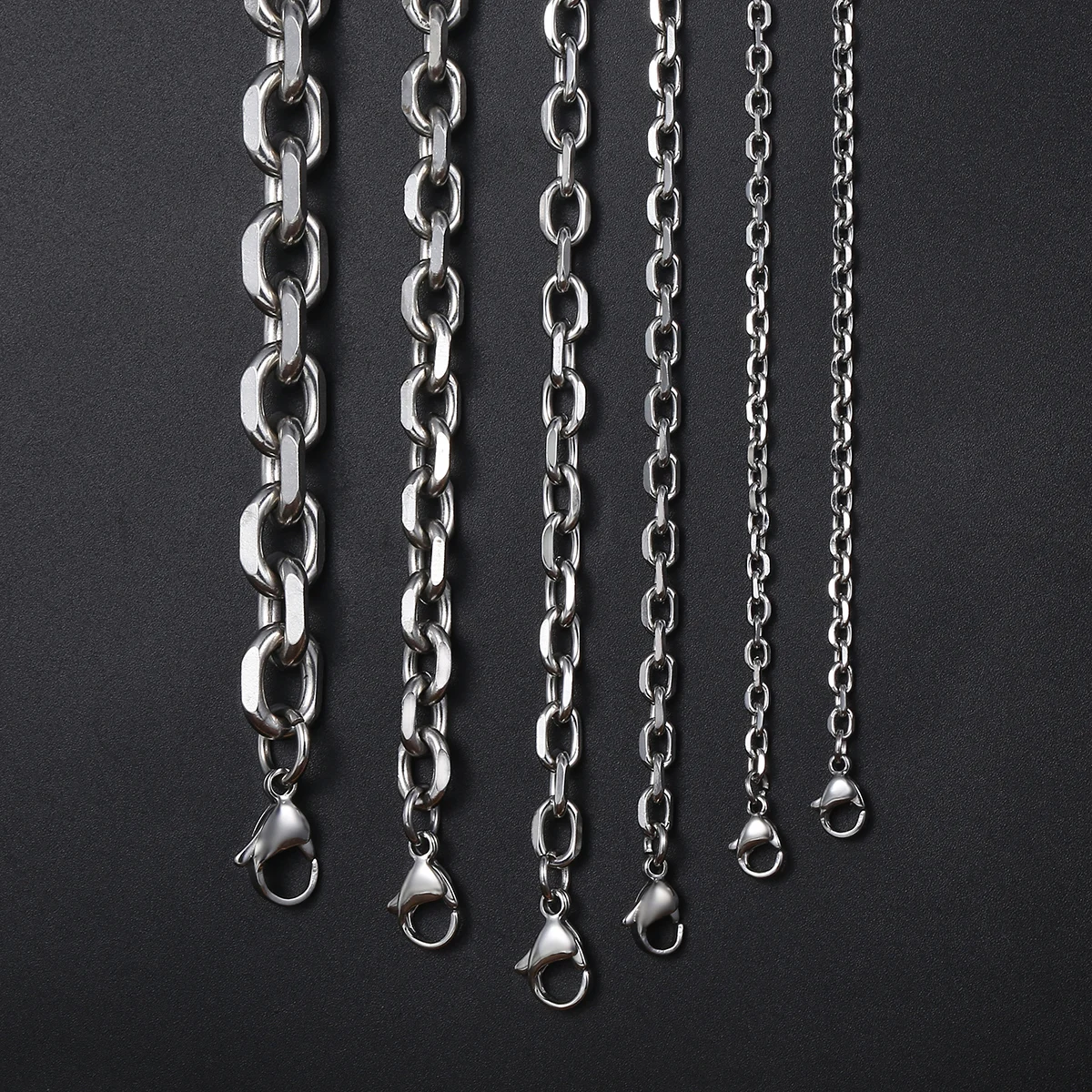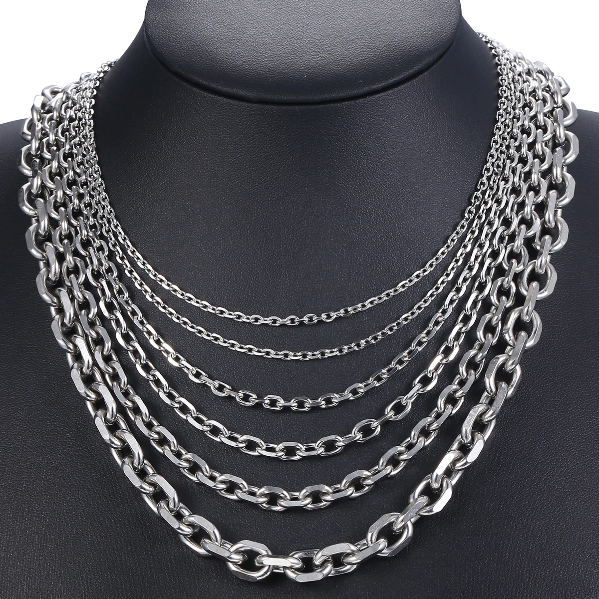 Ожерелье из нержавеющей стали для мужчин и женщин, цепь из звеньев кабеля серебристого цвета, 18-36 дюймов, бижутерия в стиле хип-хоп, 3-10 мм, KNM31