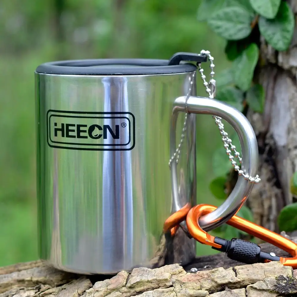 Бесплатная доставка, кружки из нержавеющей стали, походные чашки с пряжкой, кемпинговые кружки с крышкой