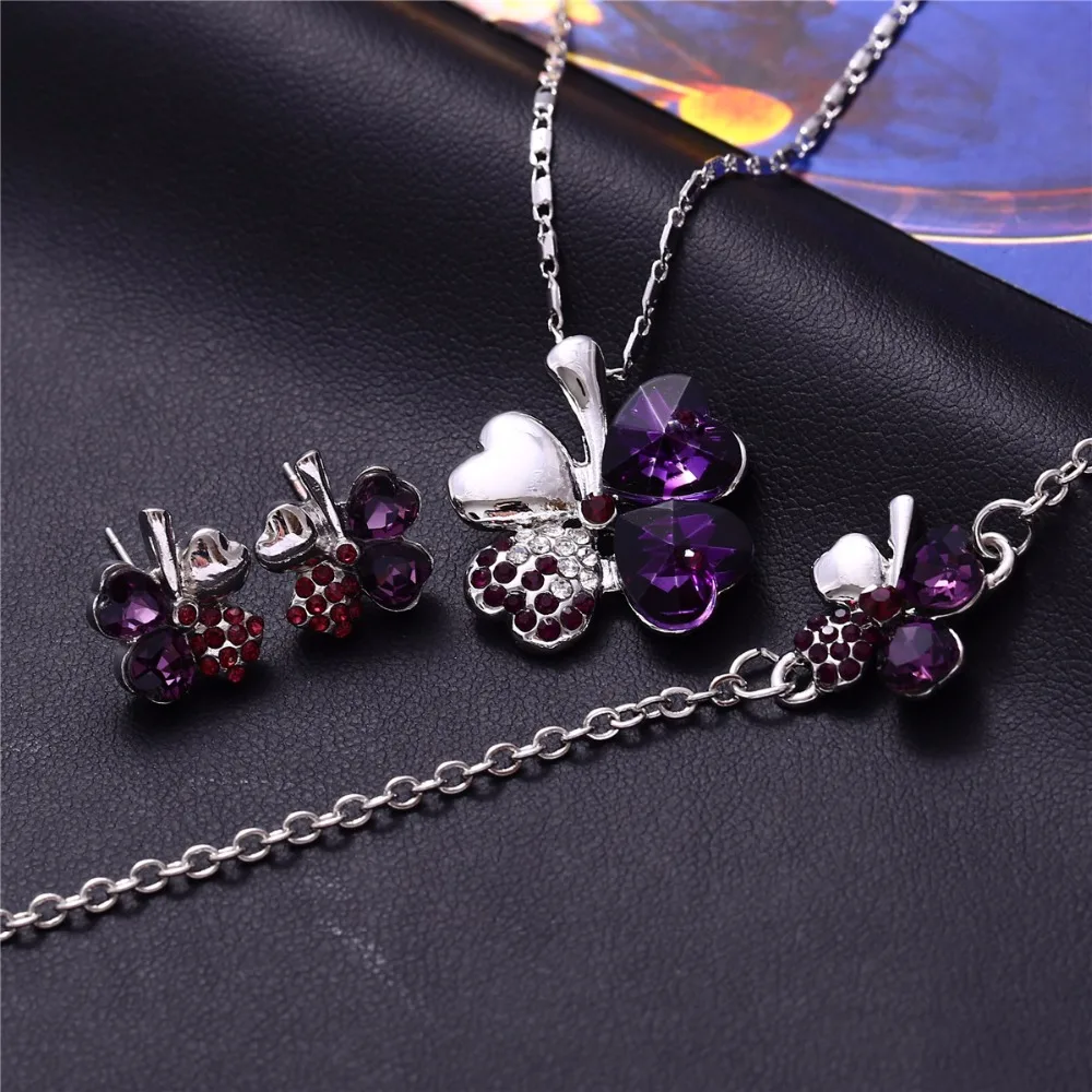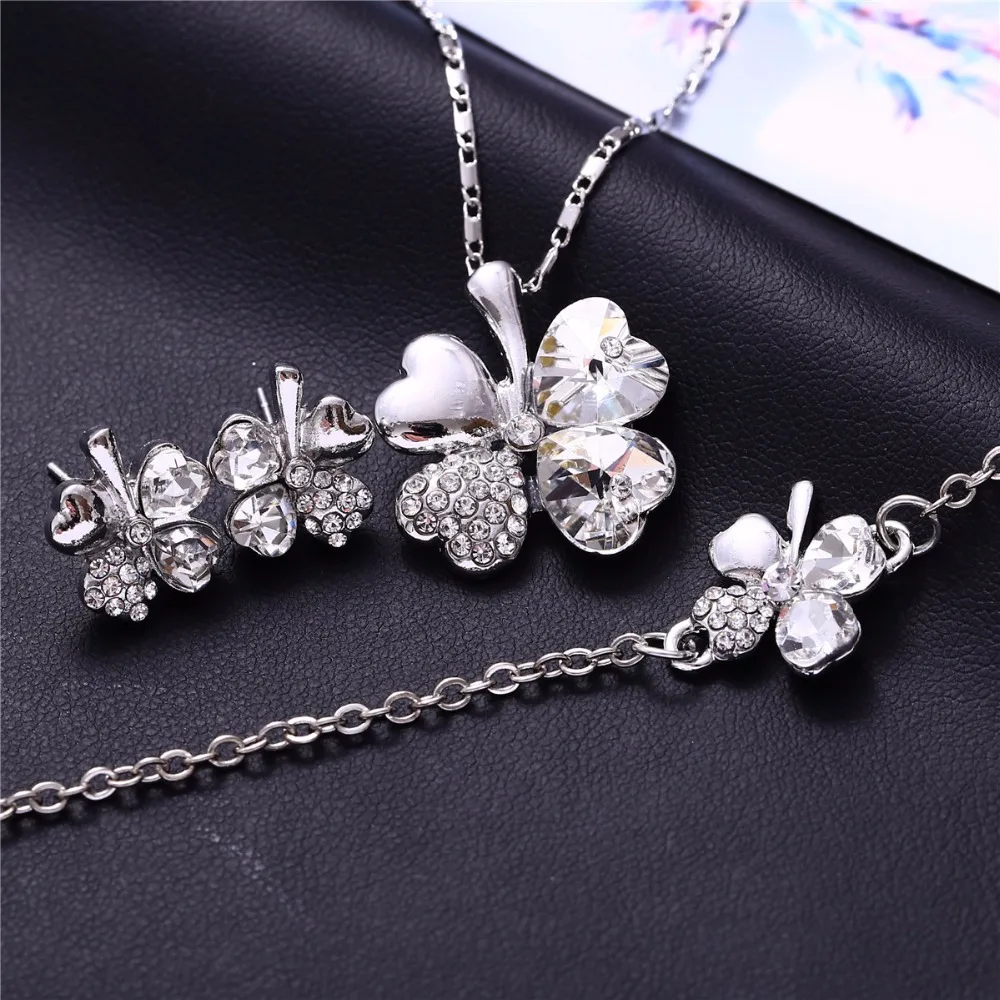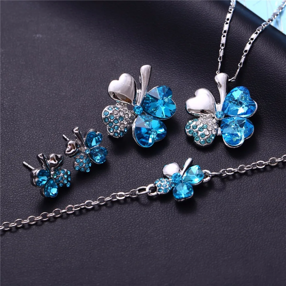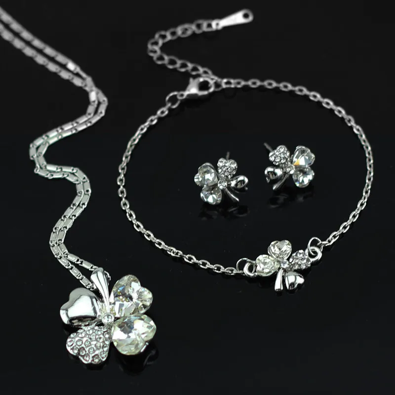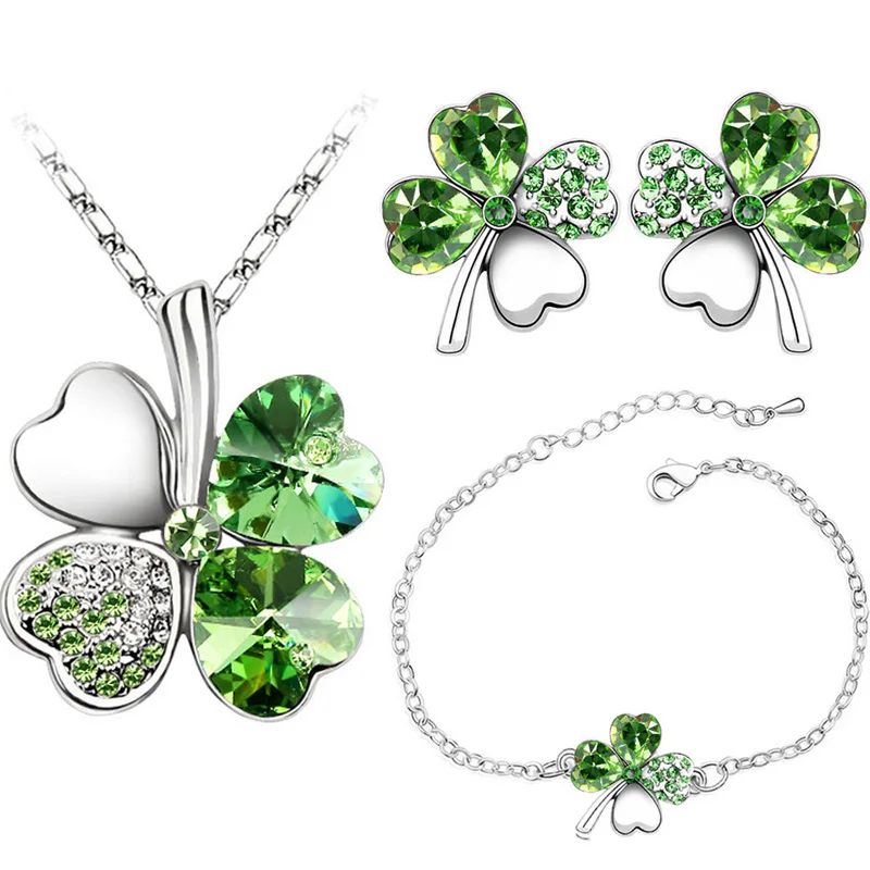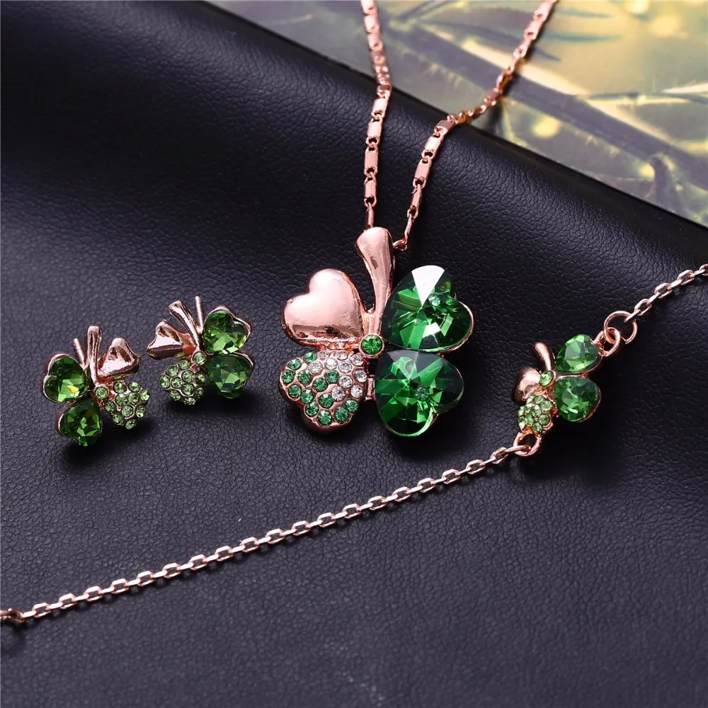 2019 Прямая поставка, оптовая продажа, искусственный кулон с четырьмя листьями, ожерелье, серьги, браслет, 11 цветов, комплект ювелирных изделий 9554