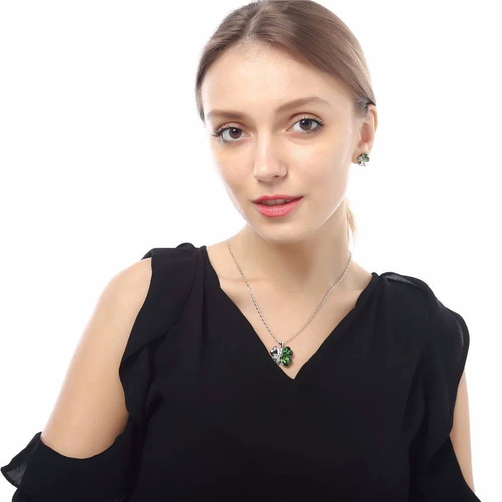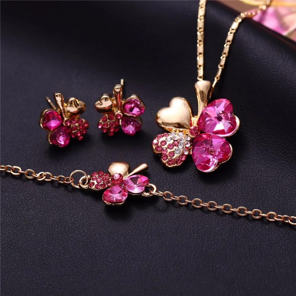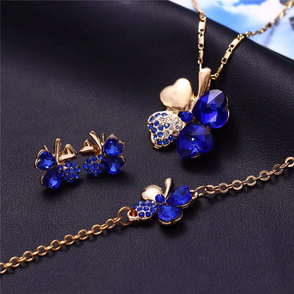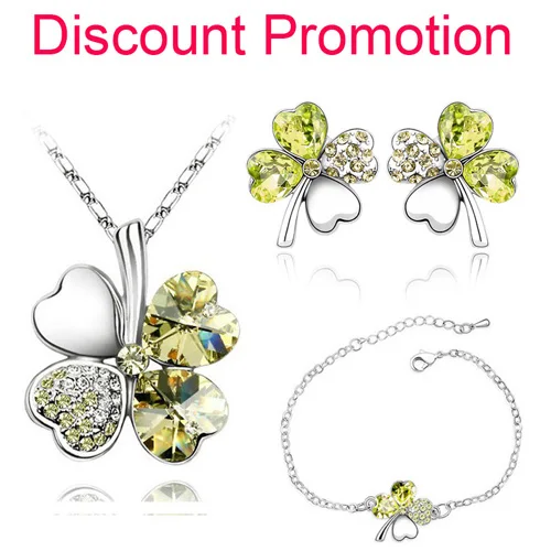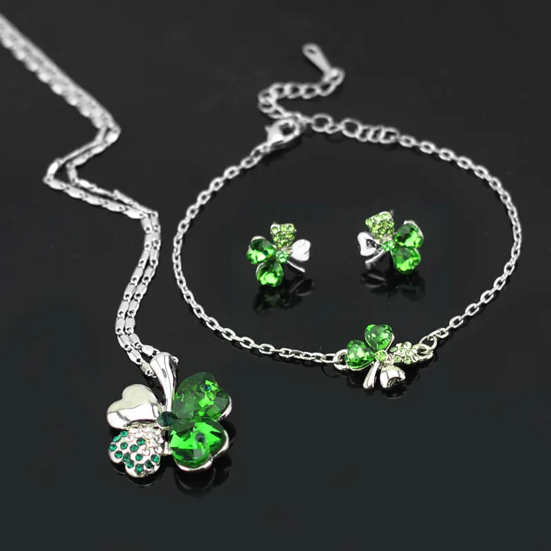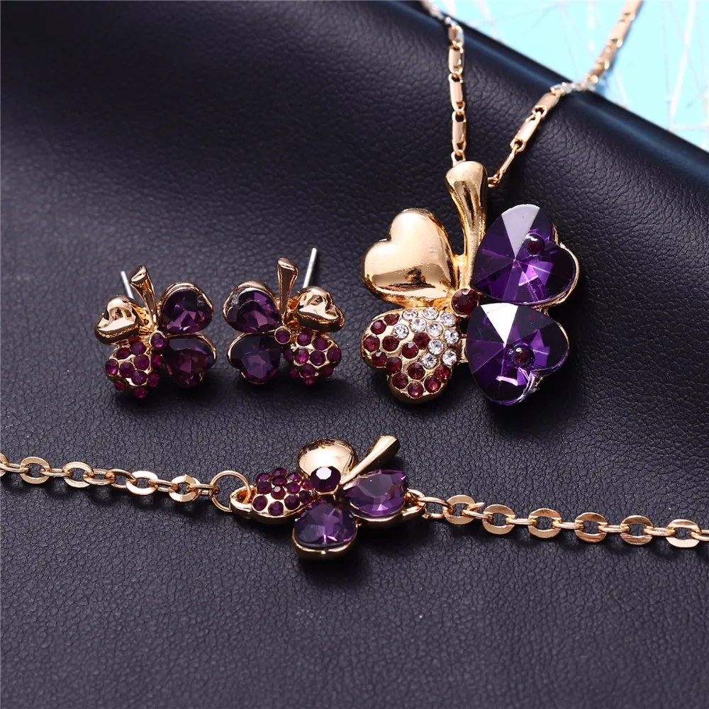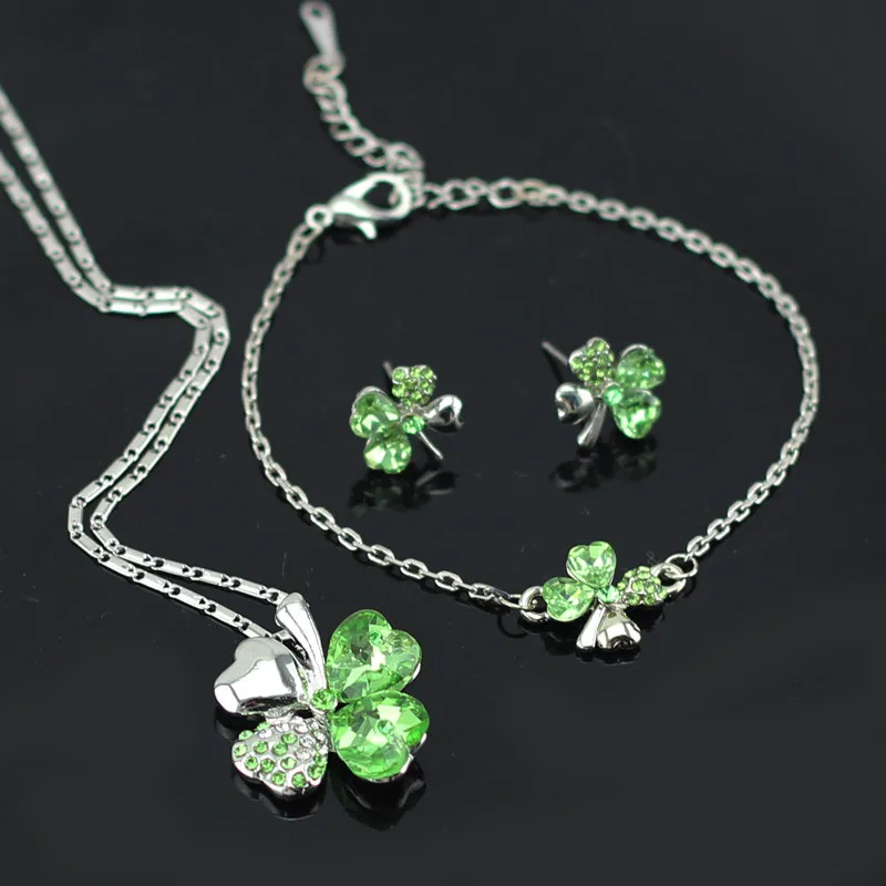2019 Прямая поставка, оптовая продажа, искусственный кулон с четырьмя листьями, ожерелье, серьги, браслет, 11 цветов, комплект ювелирных изделий 9554