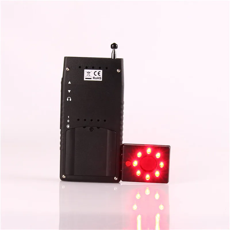 Это устройство имеет дополнительный объектив finder. 8 ультра-яркий светильник s может отсканировать объектив камеры и помочь найти проводную камеру, проверяя отражение освещенного светильник на объективе камеры.