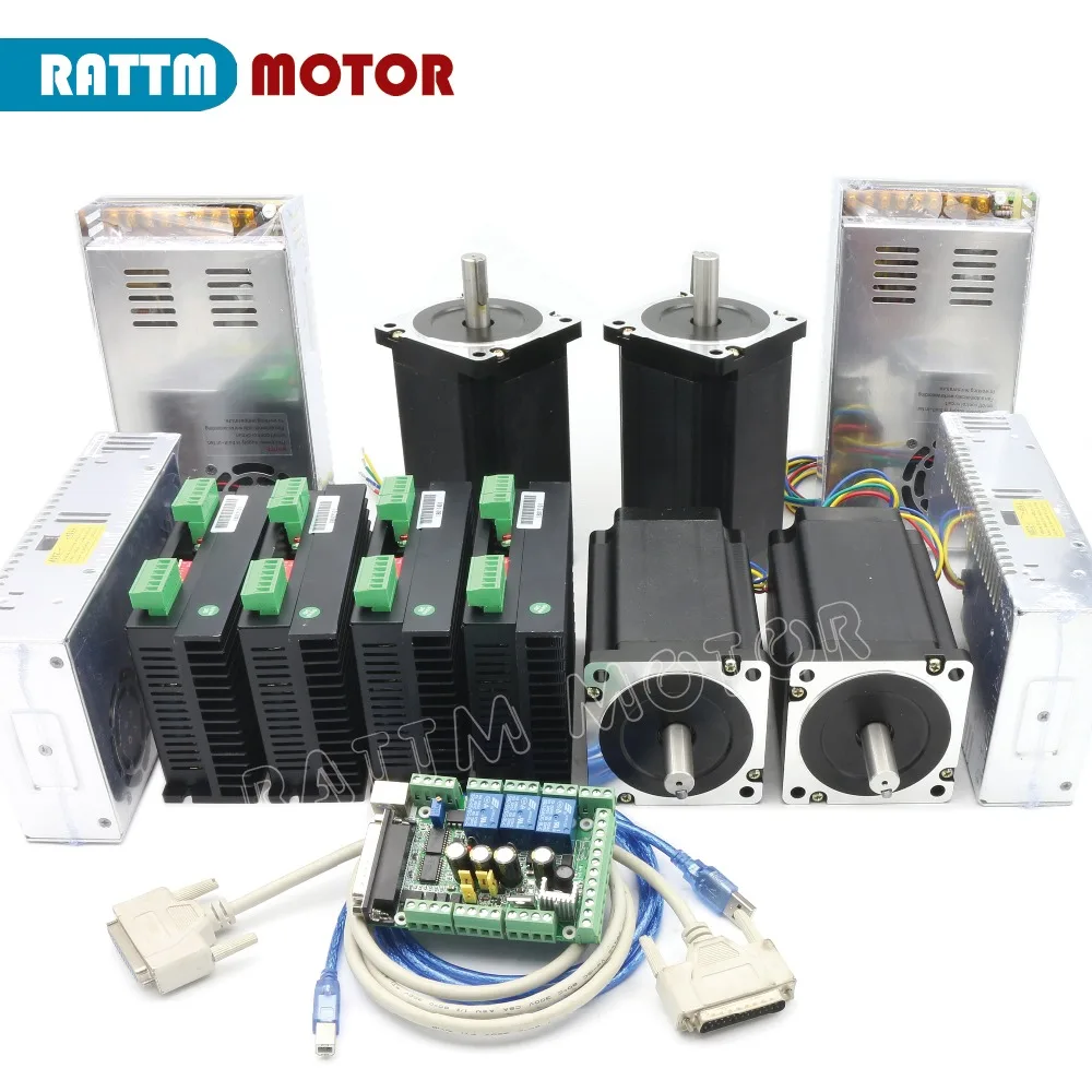 ЧПУ 4-осевой контроллер Nema 34 шаговый двигатель 154 мм (двойной вал) 1600 oz-in 5A + Драйвер CW8060 + 145A 6-осевая плата MACH3