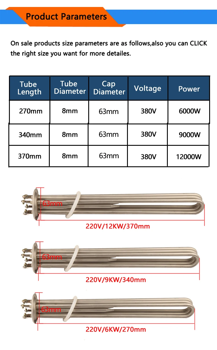 6000W9000W12000W 380V 63 мм Кепки нагревательный элемент для электрический котел, 2,48 "фланец электрический водонагреватель трубка Запчасти