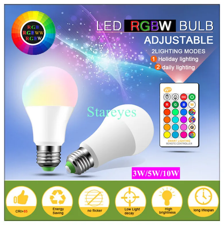 1 шт., светодиодсветодиодный лампа E27, 16 цветов, 3 Вт, 5 Вт, 10 Вт