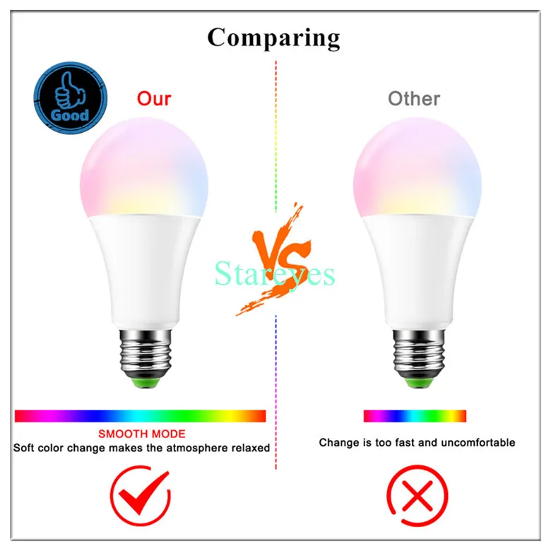 Лампочка имеет четыре режима на выбор: статический, мигающий, стробоскопический и выцветающий (плавный режим такой же, как и выцветание). Вспышка иногда динамичная и иногда мягкая, может удовлетворить больше атмосферы окружающей среды. Стробоскоп является динамичным и имеет пять передач. Когда вы собираетесь провести вечерние мероприятия, вам это понравится! Гладкая мягкая и мягкая, что делает атмосферу более расслабленной. Подходит для отдыха в семье, для занятий ведио или йогой. Это так широко, что идеально подходит для бара, КТВ, сцены и всех клубов, казино, ресторанов, кафе, дня рождения, свадебного банкета, праздничного освещения, для внутреннего и наружного декора.