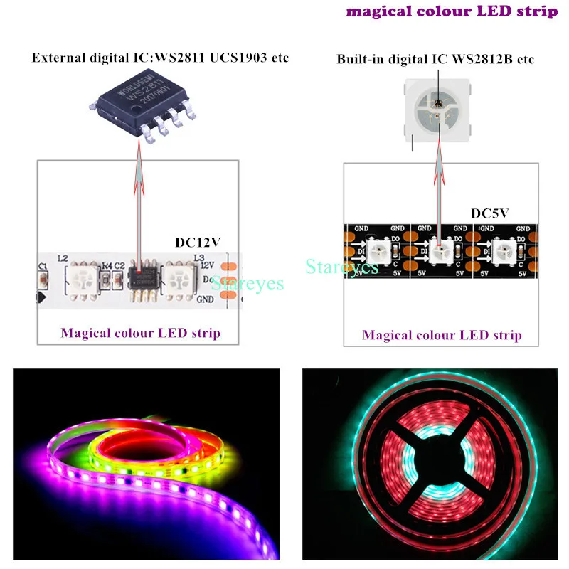 4. Светодиодный Тип: 1 шт. UCS1903 WS2811 IC control 3 шт. светодиодный чип; 1 шт. WS2812B IC control 1 шт. светодиодный чип