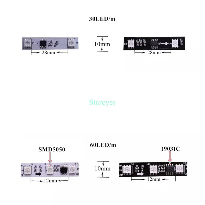 5. IC Кол-во: UCS1903 WS2811: 10 шт. (30 светодиодов/м), 20 шт. (60 светодиодов/м) / WS2812B: 30 шт. (30 светодиодов/м), 60 шт. (60 светодиодов/м)