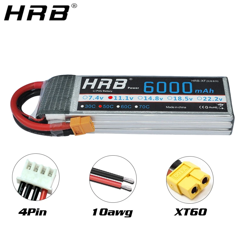 Аккумулятор HRB Lipo 3S 11,1 V 6000mah 50C T Deans XT60 EC5 XT90 Ha...