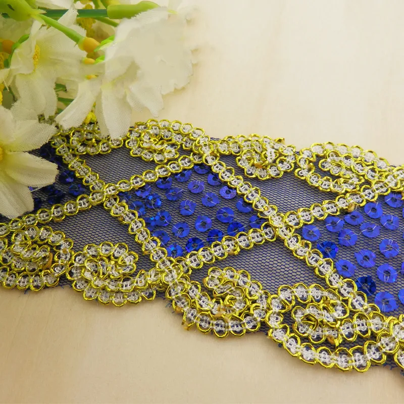 9 ярдов, Золотая вышитая кружевная аппликация с блестками, кружевная лента для шитья, наряд, пояс с блестками, квадратный цветочный 2 дюйма