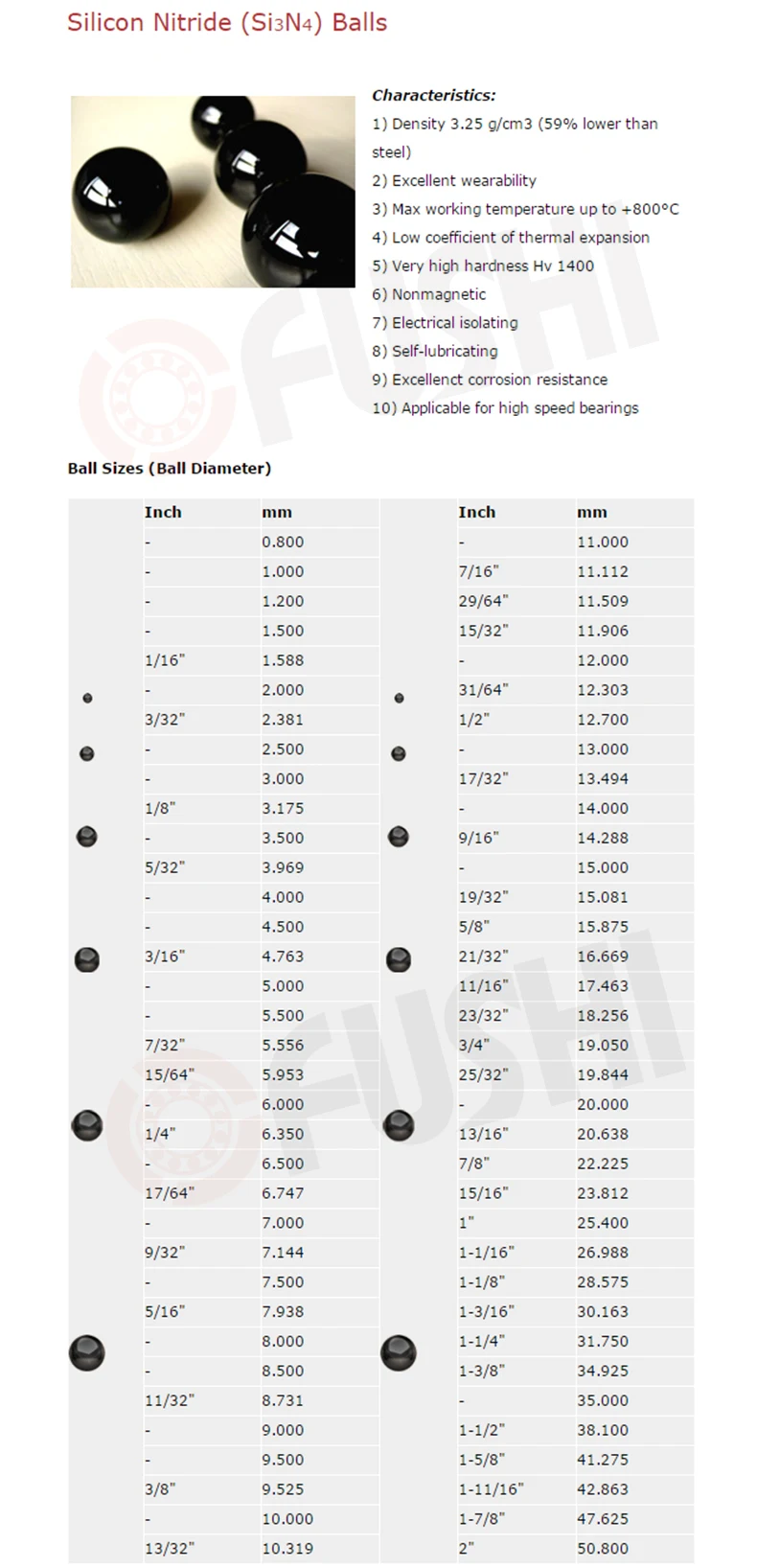 6. Коэффициент теплового расширения Si3N4-3,2 × 10-6/К. Это почти 25% подшипниковой стали, что приводит к хорошей термостойкости.