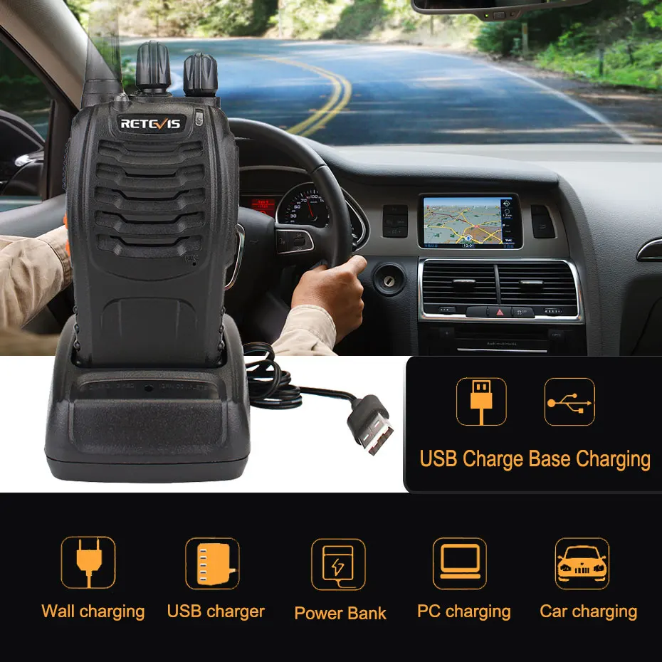 Каждое радио имеет свою собственную интеллектуальную зарядную базу USB, поддерживает зарядку на автомобиле, компьютере, блоке питания, зарядном устройстве USB, а также на стене.