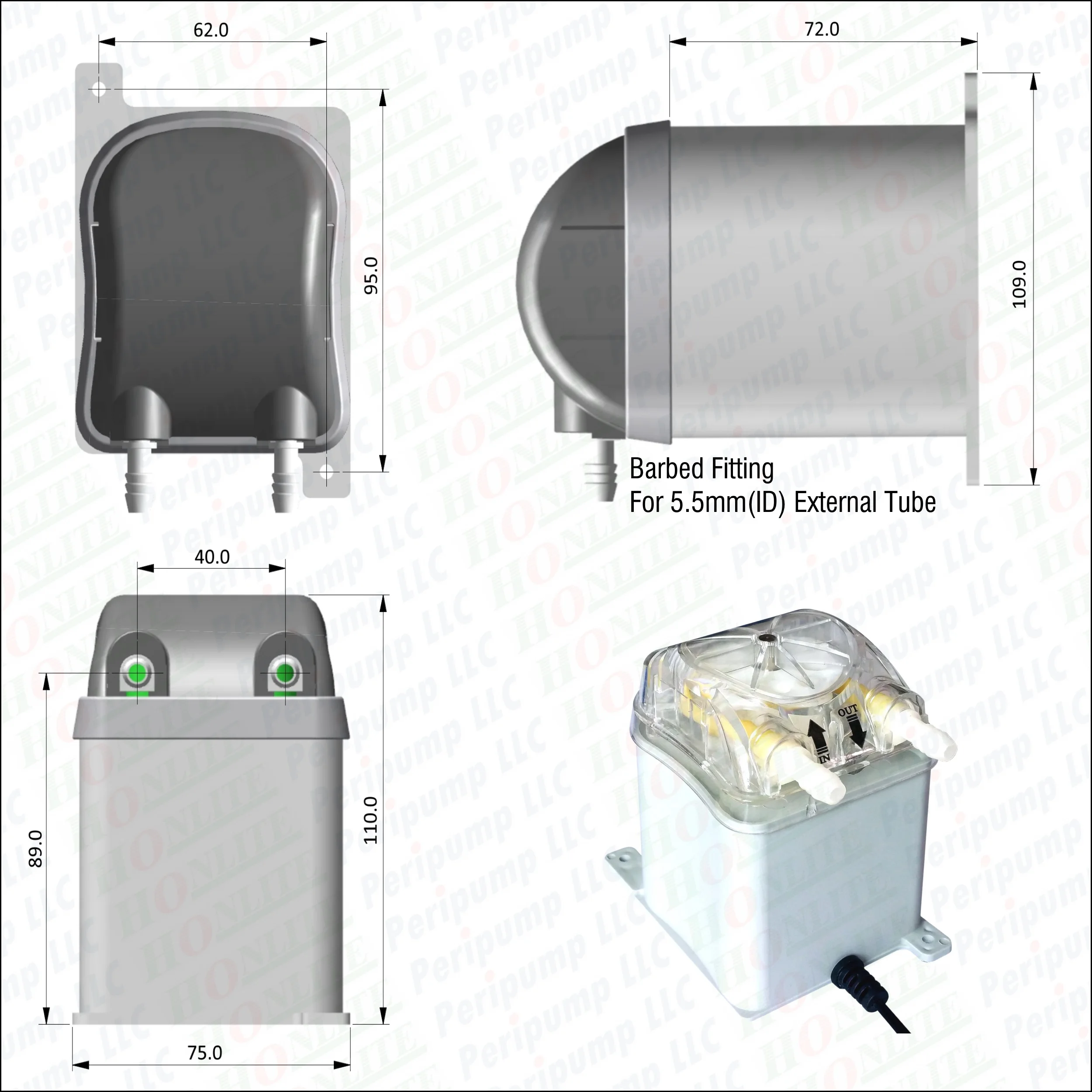 * Peripump предлагает различные скорости DC щетки моторов для различных расхода насосов.