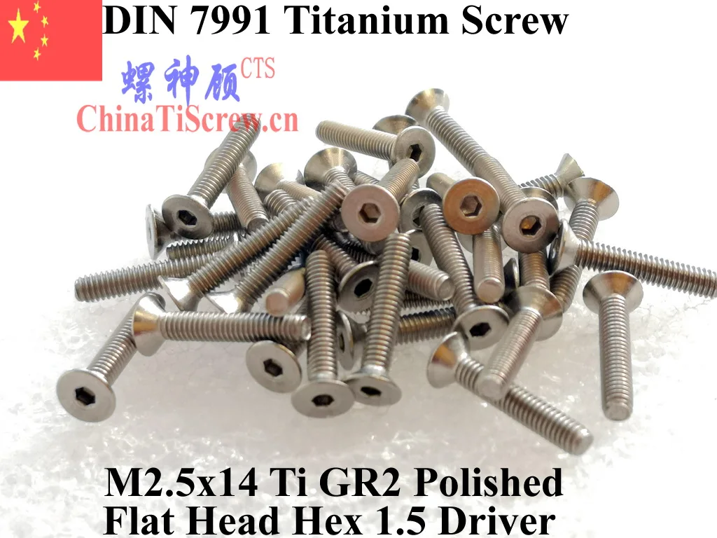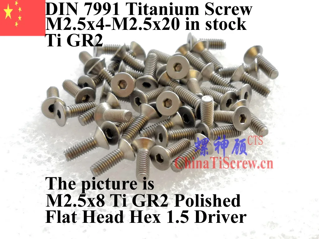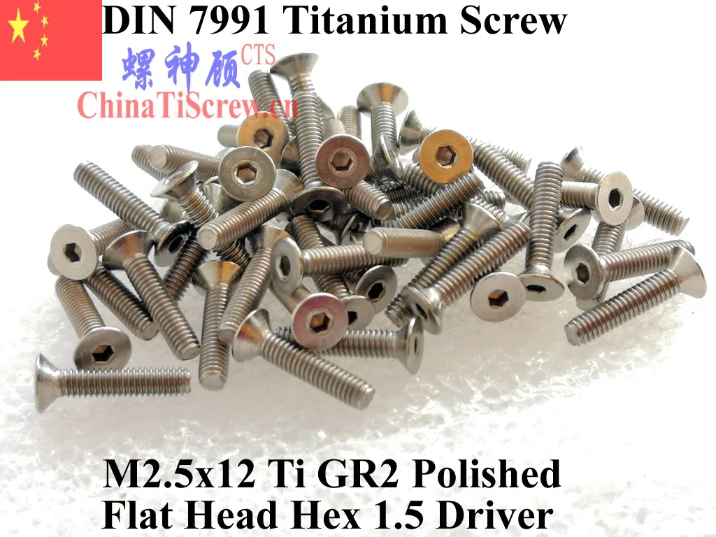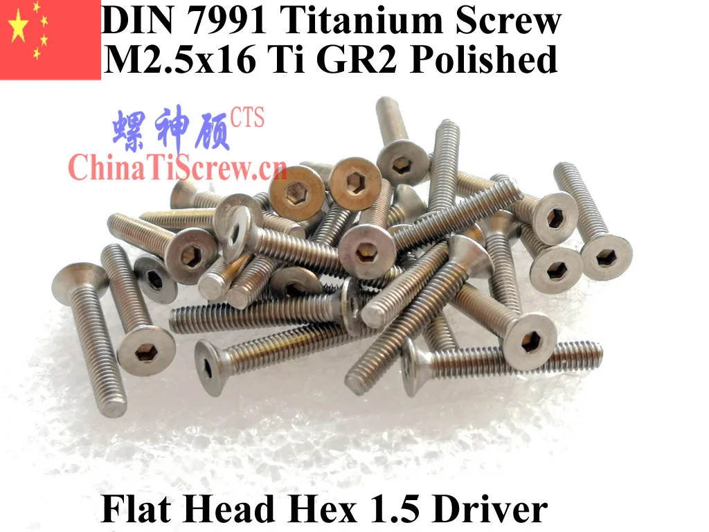 DIN 7991 M2.5 титановый винт M2.5x4 M2.5x5 M2.5x6 M2.5x8 M2.5x10 M2.5x12 M2.5x14 M2.5x16 плоская головка с шестигранной головкой 1,5 Ti GR2