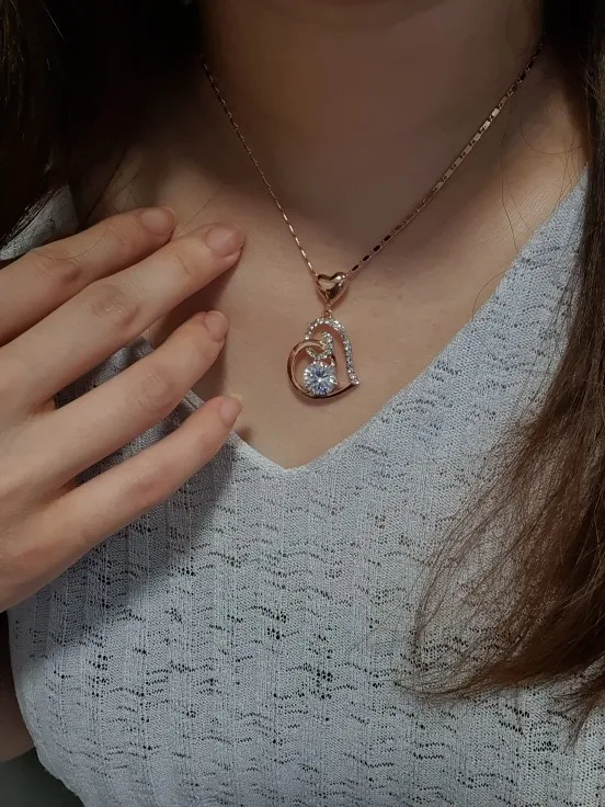 Ожерелье с кулоном в виде двух сердец, розовое золото Австрийские кристаллы Stellux пробы, TN0009