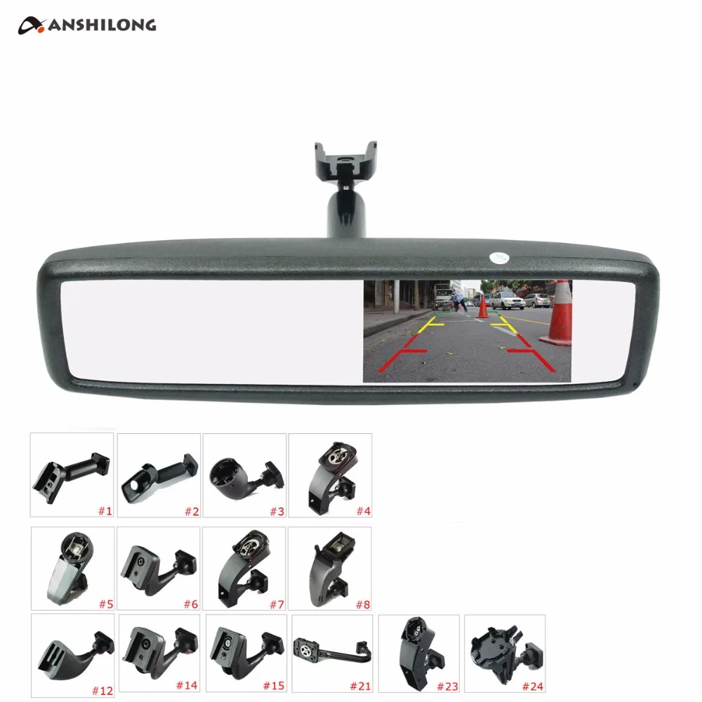Особенности:1. TFT-LCD дисплей, изображение более яркое и красочное при воспроизведении DVD / VCD или обратном2. Автоматическое переключение на функции системы заднего вида, автоматическое воспроизведение аудио и видео во время вождения3. Без кнопки4. Может быть подключен к VCD / DVD / GPS / TV и другим видео выходным сигналам и совместимости;Характеристики:1. Размеры: 4,3 дюйм (ов). Наиболее подходящее использование безопасности заднего вида;2. Дисплей: TFT-LCD экран высокой четкости3. Разрешение: 480 (H) * RGB * 272 (V). Разрешение HD;4. Формат дисплея: 16:9 или 4:35. Мощность: ≤ 2 Вт. Сверхнизкой потребеление энергии6. Рабочее напряжение: 12 В постоянного тока7. Видео вход: AV1/AV2 видео вход, AV1 подключение VCD / DVD видео выходной сигнал (система по умолчанию), AV2 подключение камеры заднего хода (автоматически переключается);8. Сигнальная система: PAL / NRSC / AUTO. Совместим со всеми форматами сигналов;9. Яркость: 250 кд/м210. Контрастность: 300:1Функции обратного хода:1. Ситуация загрузки: Автоматическое переключение с экрана видео AV1 (VCD / DVD) на экран AV2 (камера заднего вида); Автоматическое возвращение видео AV1 (VCD / DVD) Воспроизведение экрана после заднего хода2. Ситуации выключения: Автоматический запуск обнаружения AV2 (камера заднего вида) сигнала и отображает задний экран AV2; Автоматическое выключение после заднего хода* Использование 4,3 дюйма высокой яркости ЖК-дисплей экран, все размеры, почти такой же, как и оригинальное автомобильное зеркалом заднего вида, отвечают требованиям профессиональной установки, сохраните оригинальный стиль, С различными видами установленных аксессуаров для более 30 моделей автомобилей.Список соответствия специальных кронштейнов для крепления зеркала:Список кронштейнов(Пожалуйста, проверьте кронштейн вашего автомобиля и убедитесь, что наш относительный кронштейн работает для вашего автомобиля перед размещением заказа):