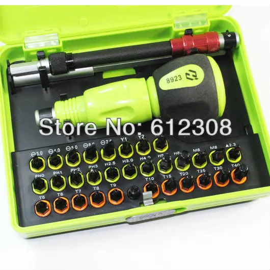 1 пластиковая черная зеленая ручка 1 x удлинитель 1 х удлинитель 32 x насадки для отвертки 1 х черный зеленый пластиковый чехол посылка