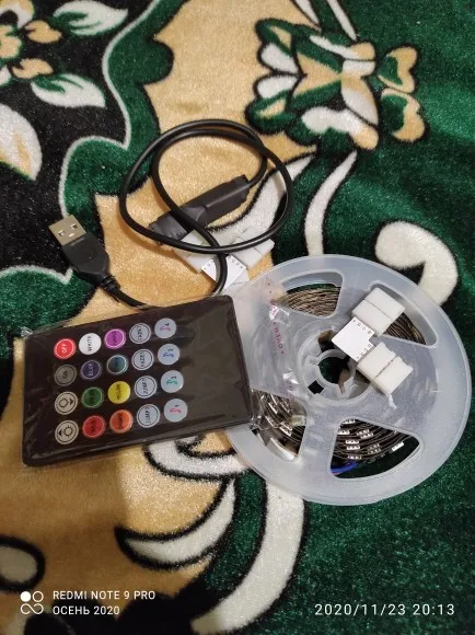 Быстрая доставка. Упаковано хорошо. Хорошая светодиодная лента. Держится на поверхности крепко. В комплекте 3г переходника. Батарейка в пульте есть. Все цвета и режимы работают. При вкл/выкл выбранный режим сохраняется. На тв 32 дюйма хватило 2 метра. Брать однозначно стоит...